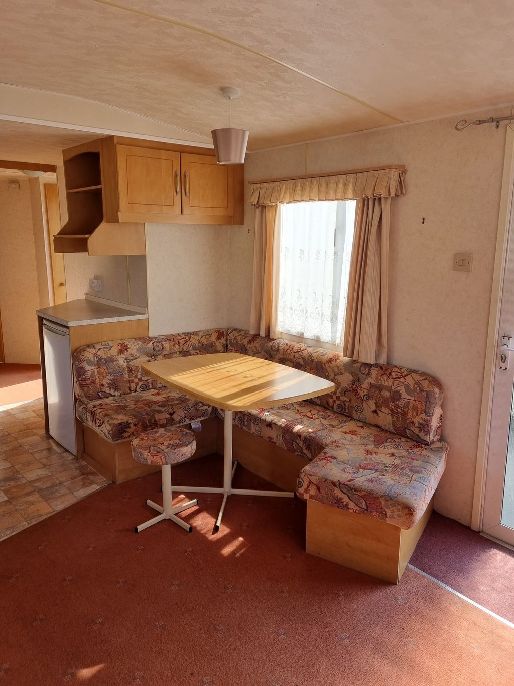 Extra široký, krásný, kompletně vybavený mobilheim 10,9 x 3,7m se dvěma vchody, SEDLOVOU STŘECHOU, DVOJITÝMI (izolačními) OKNY A DVEŘMI - dithermy. Prostorný obývací pokoj (rozkládací sedačka ), jídelní kout, kuchyň ve tvaru U včetně spotřebičů, prostorná ložnice ( dvoulůžko ), pokoj ( 2 lůžka ), koupelna se sprchovým koutem s pevnou zástěnou, wc zvlášť. Plynový krb + el. přímotopy v pokojích, plynová karma na ohřev vody. Zvýšený strop v celém mobilheimu !!