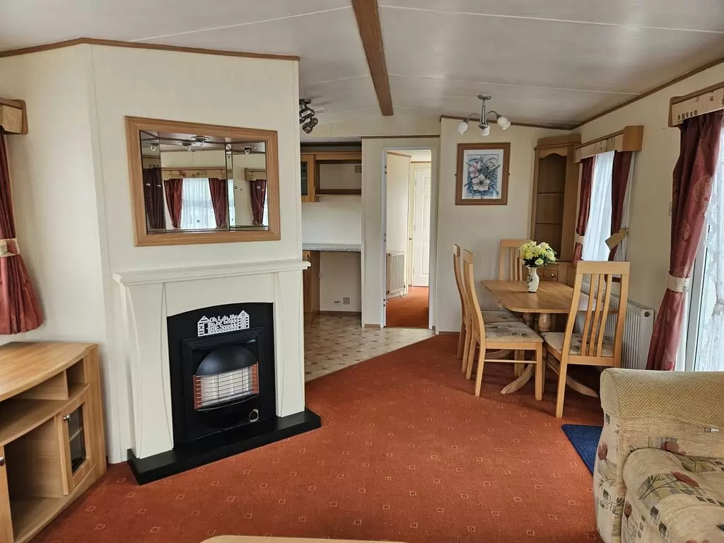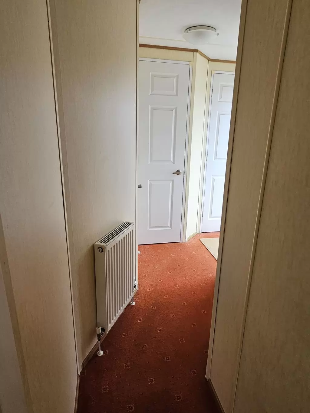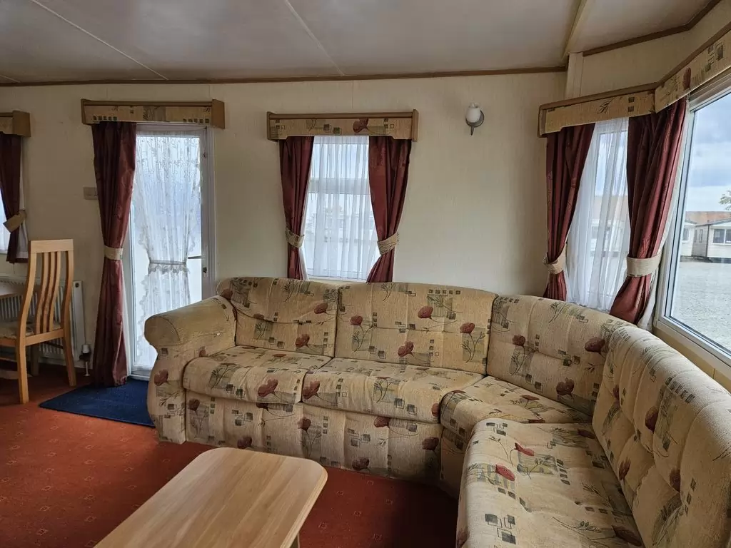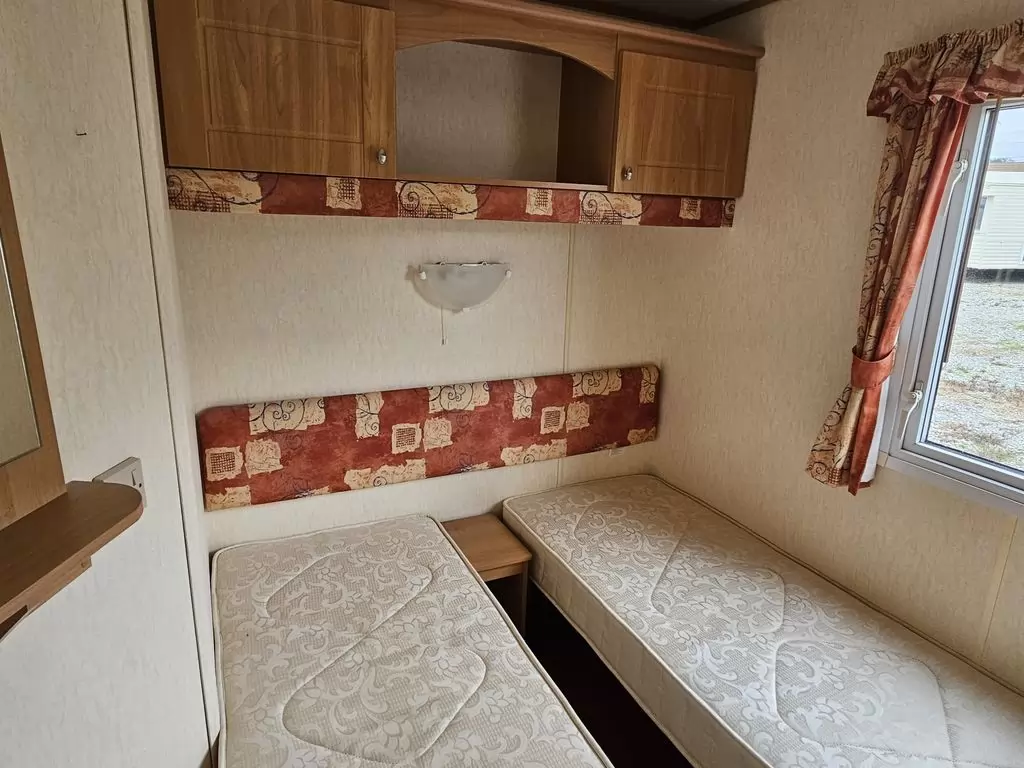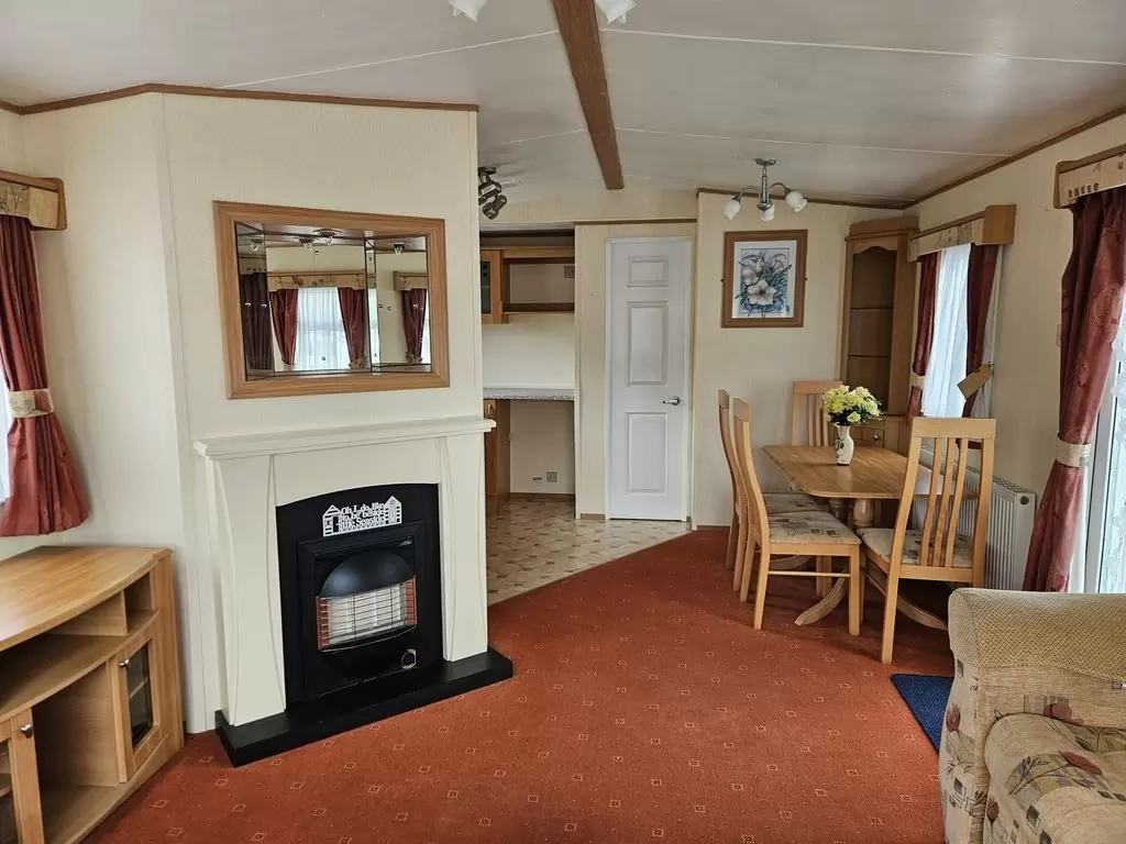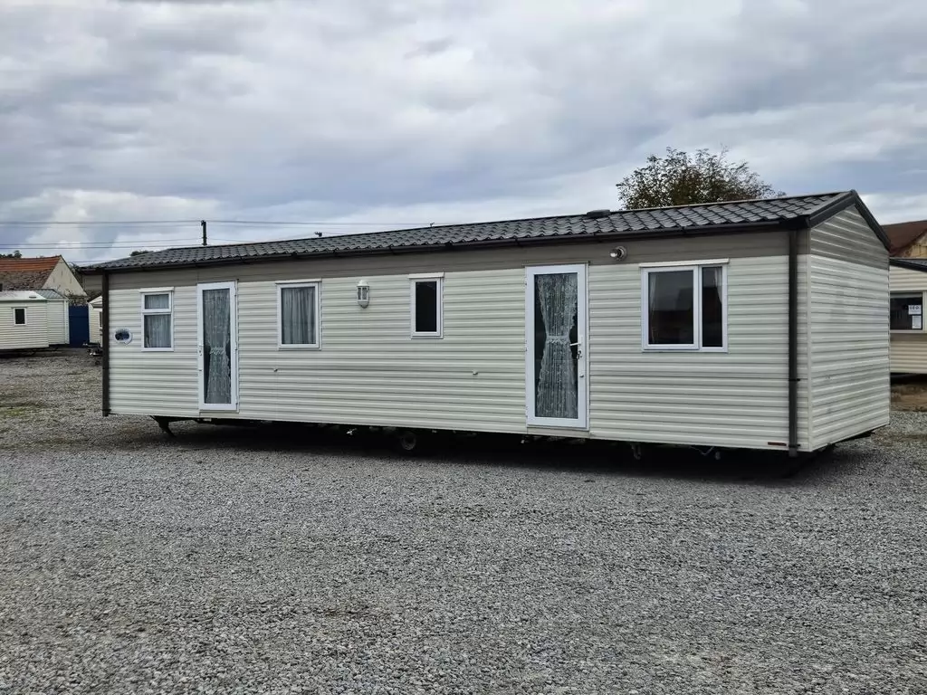 Extra široký, KRÁSNÝ, čistý, kompletně vybavený mobilheim 11,3 x 3,7m se dvěma vchody, SEDLOVOU STŘECHOU S IMITACÍ STŘEŠNÍCH TAŠEK, DVOJITÝMI (izolačními) OKNY A DVEŘMI - dithermy, CENTRÁLNÍM VYTÁPĚNÍM - plynový kotel + radiátory ve všech místnostech + plynový krb v obývacím pokoji. Prostorný obývací pokoj ( rozkládací sedačka ), jídelní kout, kuchyň ve tvaru L, prostorná ložnice ( dvoulůžko s úložným prostorem ), pokoj ( 2 lůžka ), koupelna se sprchovým koutem s pevnou zástěnou a termostatickou baterií + wc. Zvýšený strop v celém mobilheimu !!