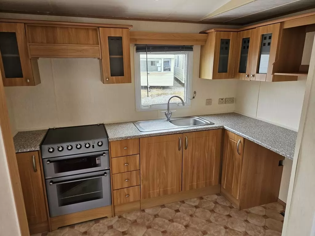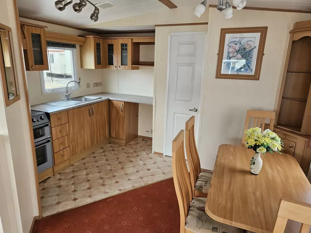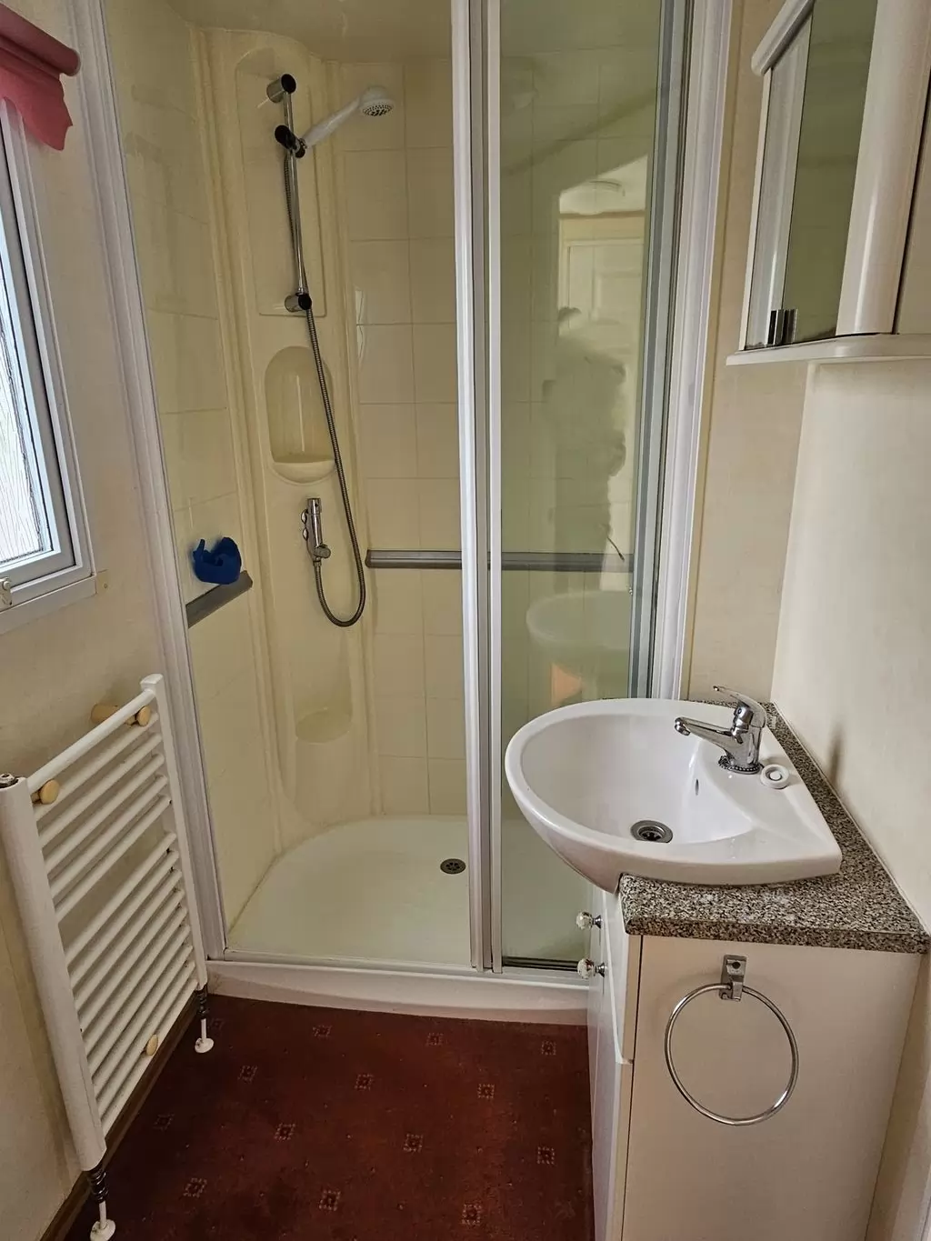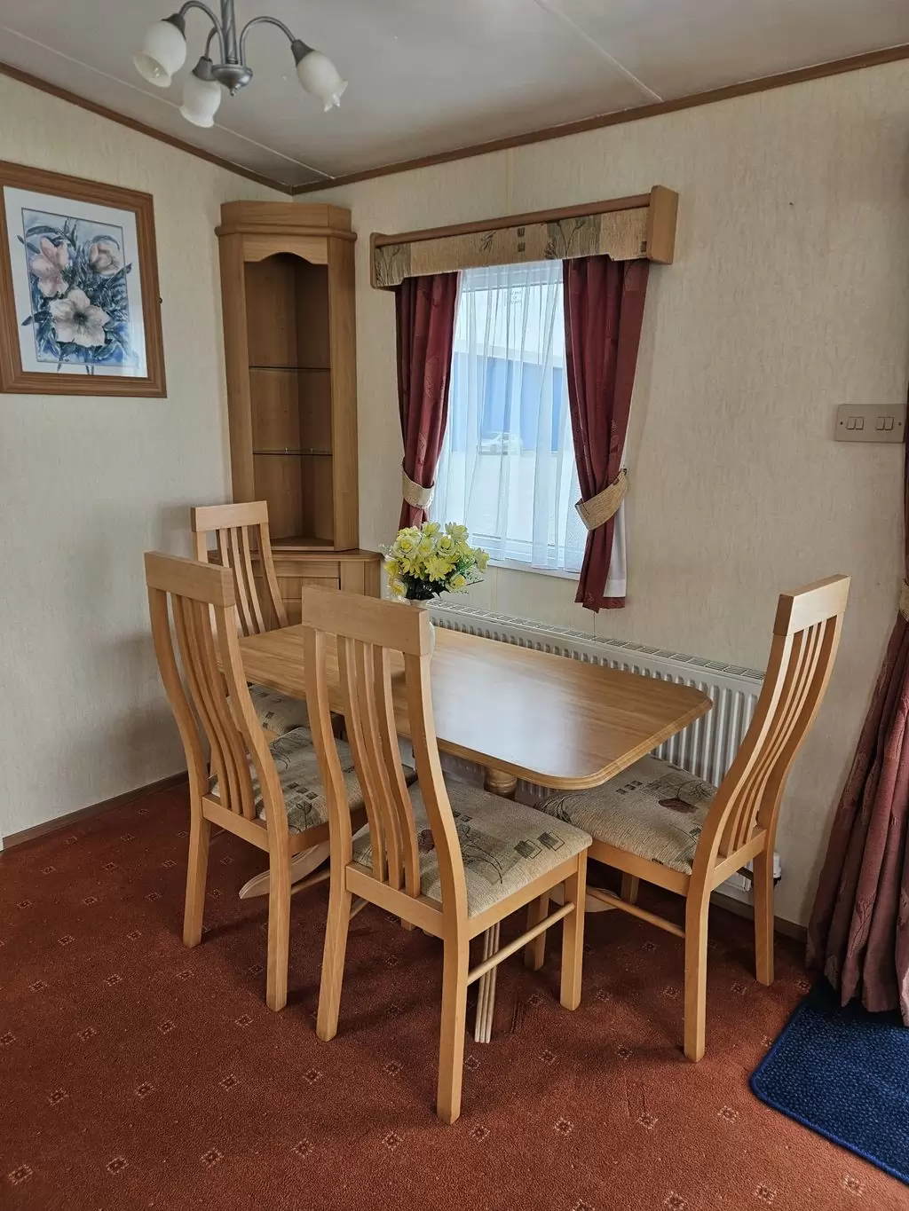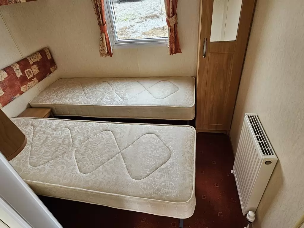 Extra široký, KRÁSNÝ, čistý, kompletně vybavený mobilheim 11,3 x 3,7m se dvěma vchody, SEDLOVOU STŘECHOU S IMITACÍ STŘEŠNÍCH TAŠEK, DVOJITÝMI (izolačními) OKNY A DVEŘMI - dithermy, CENTRÁLNÍM VYTÁPĚNÍM - plynový kotel + radiátory ve všech místnostech + plynový krb v obývacím pokoji. Prostorný obývací pokoj ( rozkládací sedačka ), jídelní kout, kuchyň ve tvaru L, prostorná ložnice ( dvoulůžko s úložným prostorem ), pokoj ( 2 lůžka ), koupelna se sprchovým koutem s pevnou zástěnou a termostatickou baterií + wc. Zvýšený strop v celém mobilheimu !!