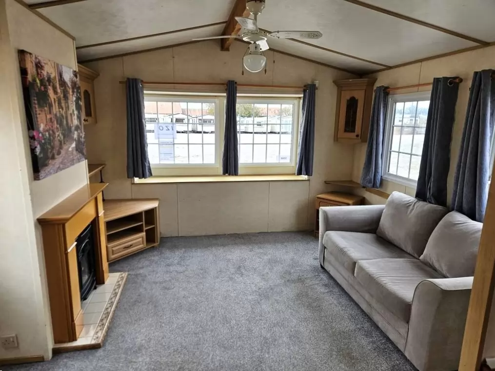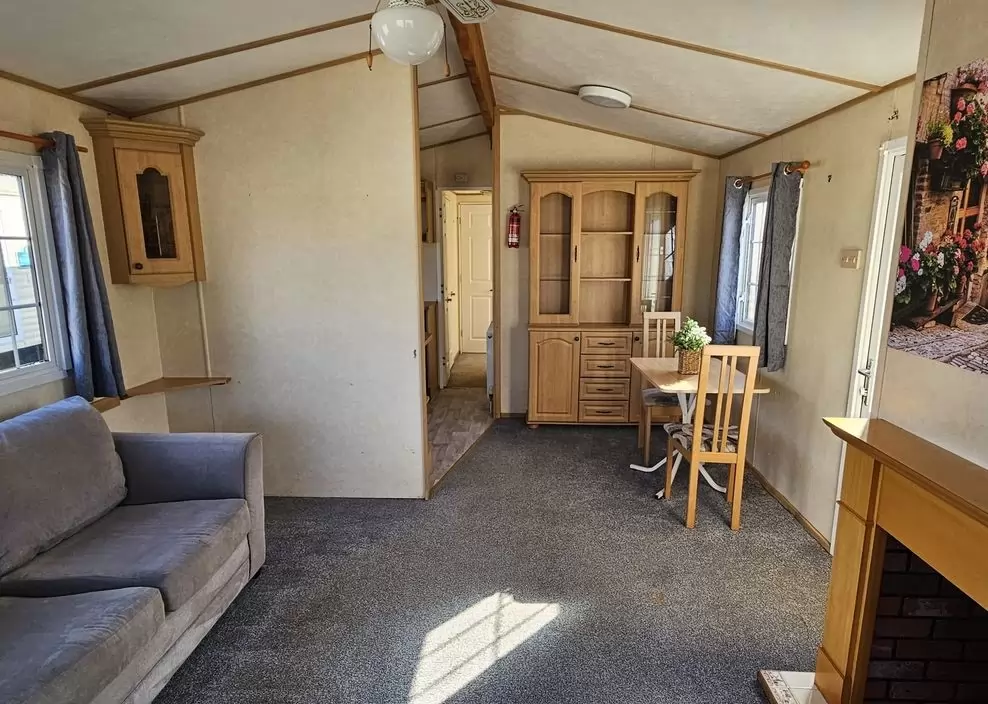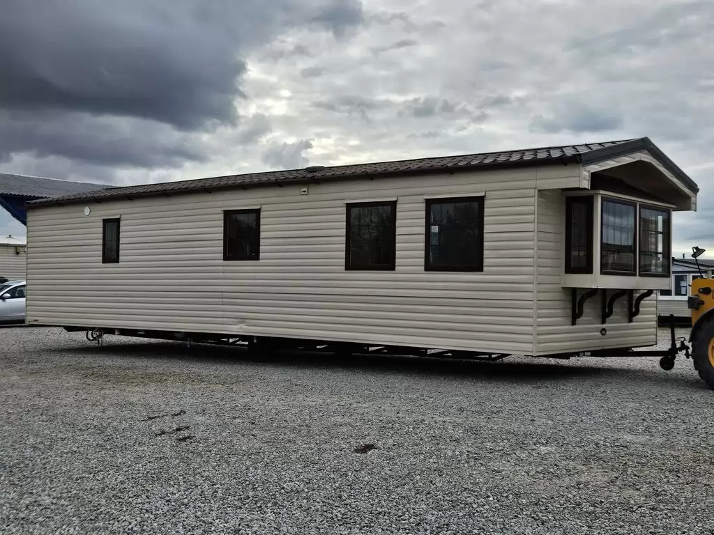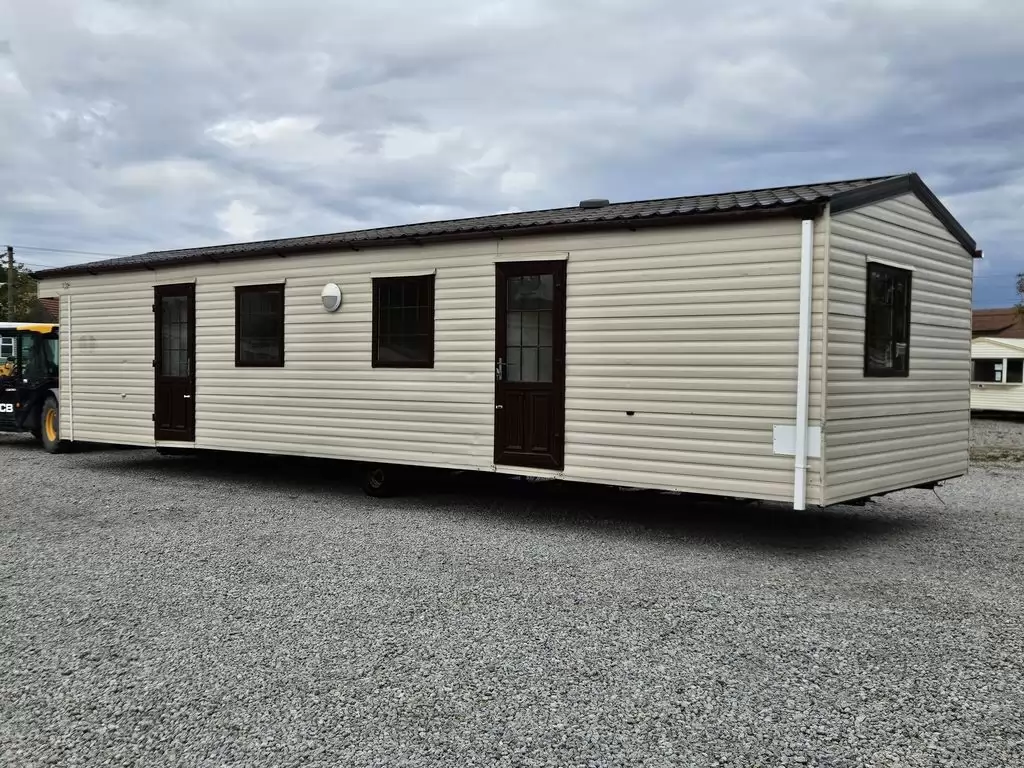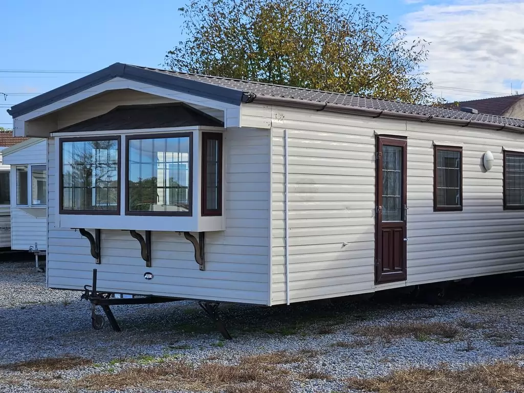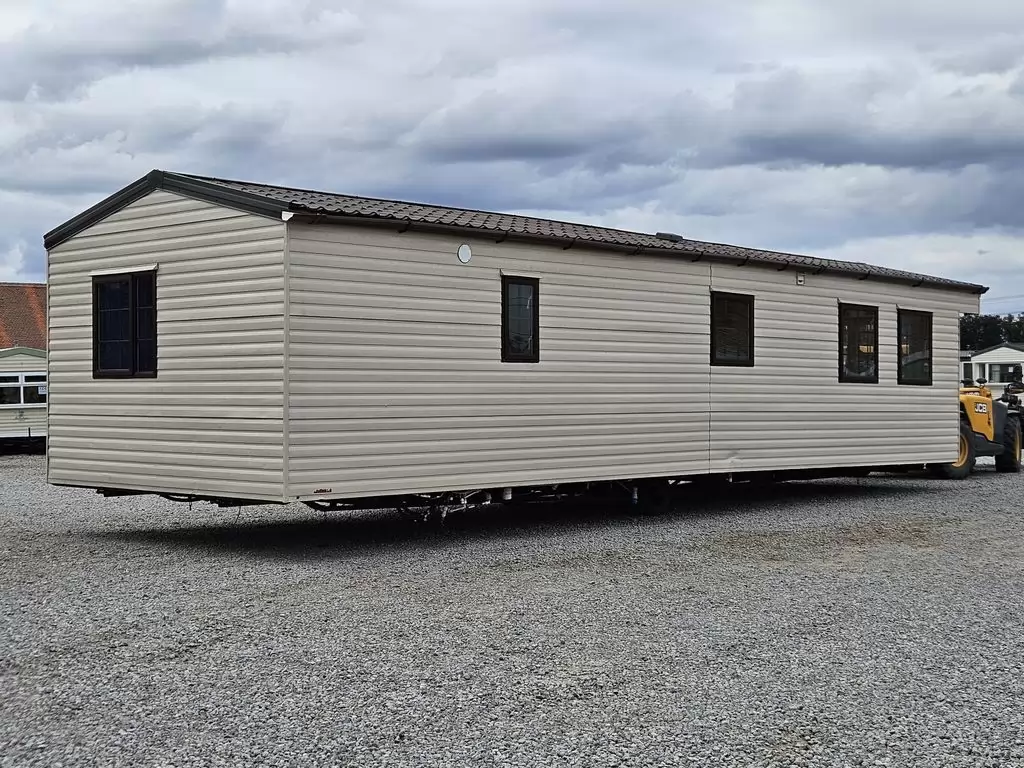 Extra široký, KRÁSNÝ, kompletně vybavený mobilheim 11,3 x 3,7m se dvěma vchody, SEDLOVOU STŘECHOU s IMITACÍ STŘEŠNÍCH TAŠEK, DVOJITÝMI (izolačními) OKNY - dithermy , CENTRÁLNÍ VYTÁPĚNÍ - elektrokotel + radiátory ve všech pokojích, elektrický krb v obývacím pokoji.Prostorný obývací pokoj ( rozkládací sedačka ), jídelní kout, kuchyň ve tvaru U včetně spotřebičů , ložnice ( dvoulůžko ), pokoj ( lůžko ), koupelna se sprchovým koutem s pevnou zástěnou a termostatickou baterií + wc. Elektrický bojler na ohřev vody. Zvýšený strop v celém mobilheimu !