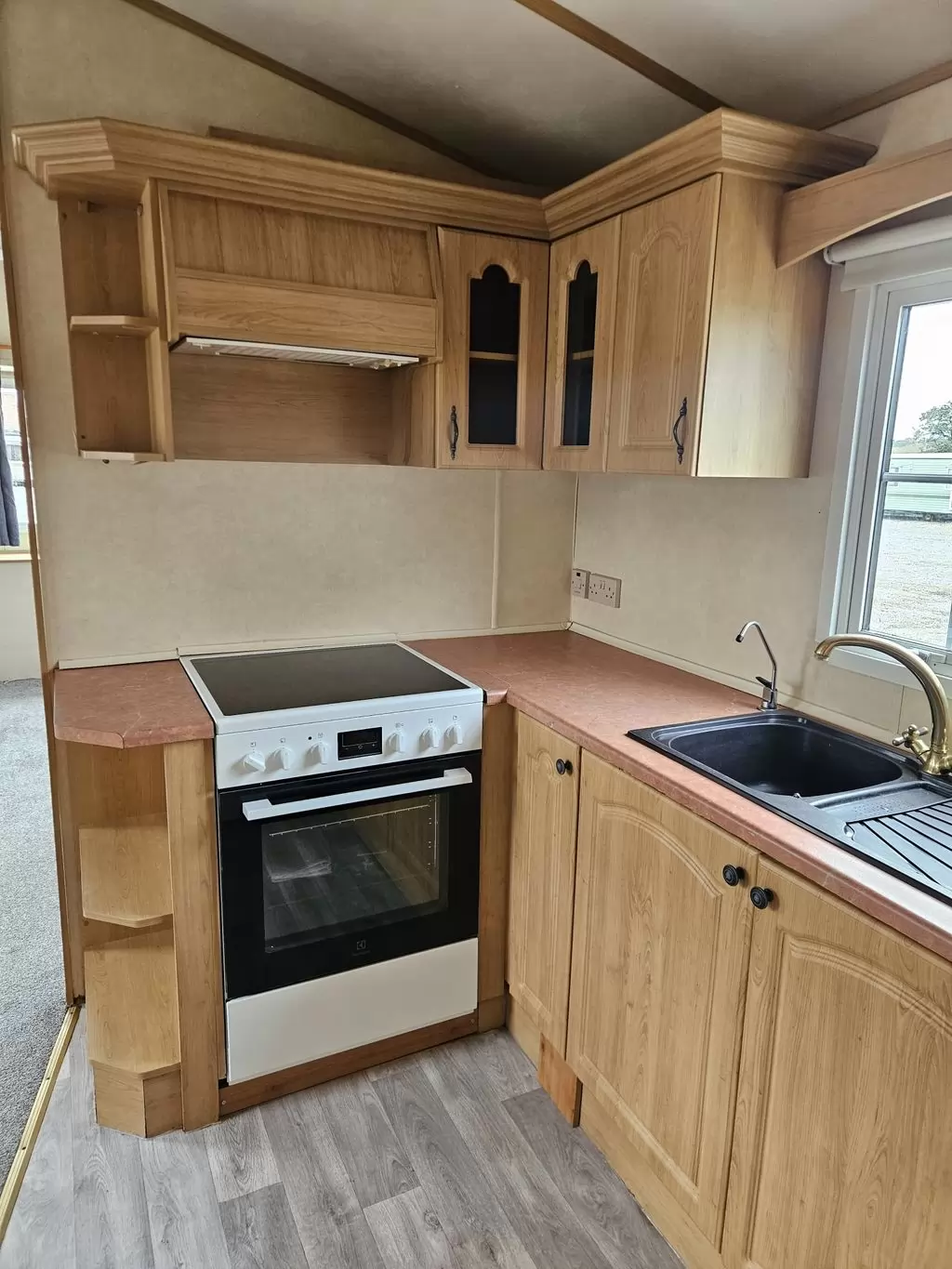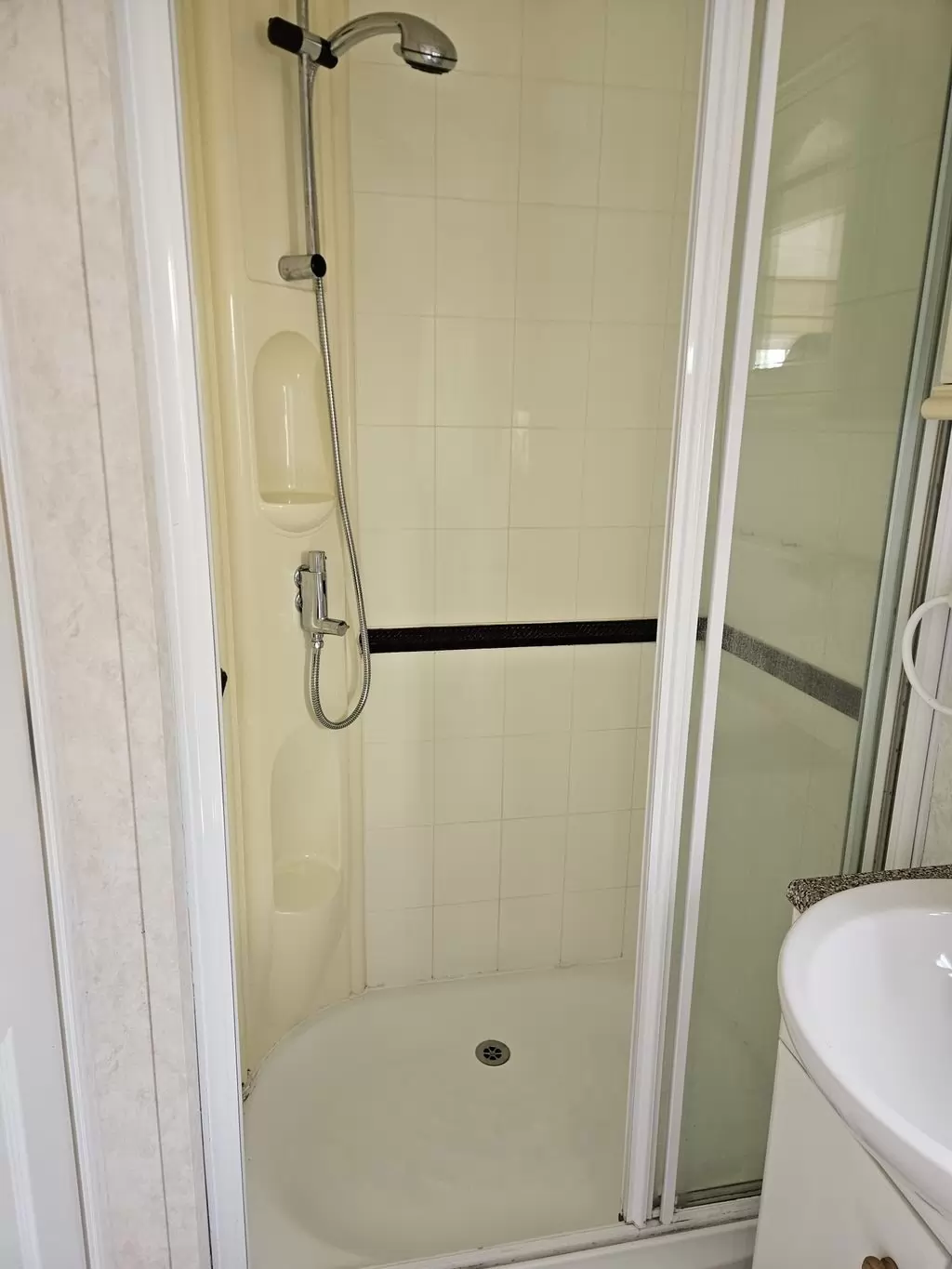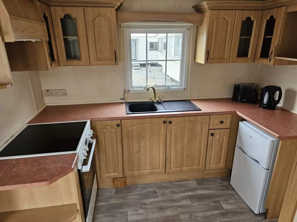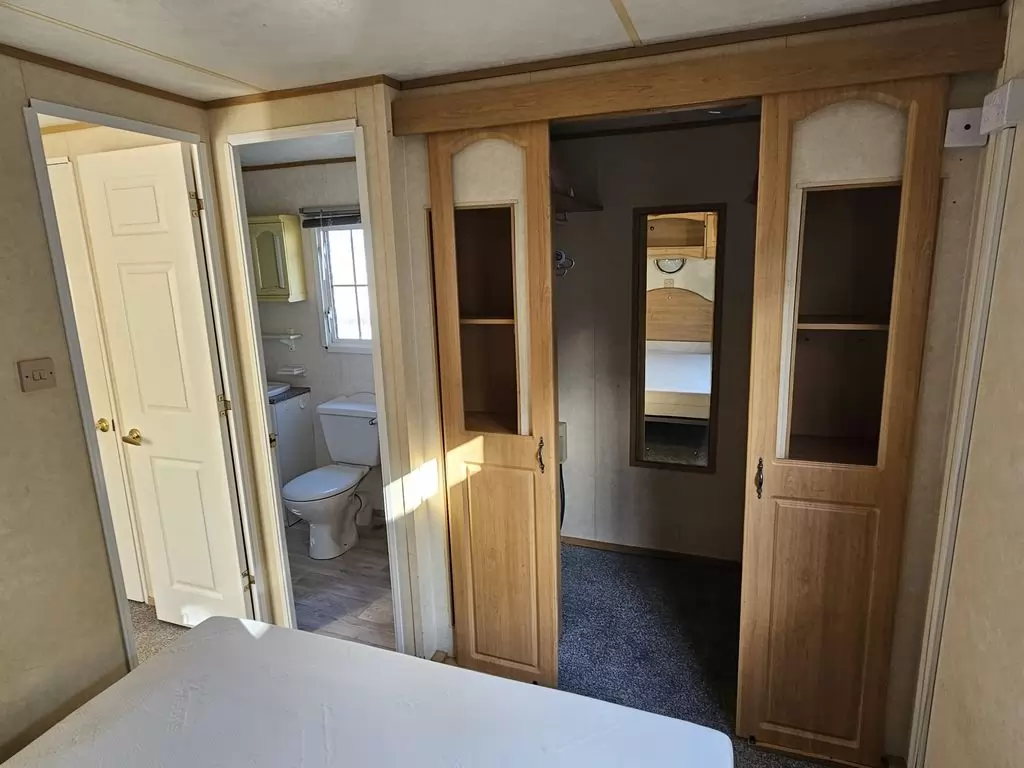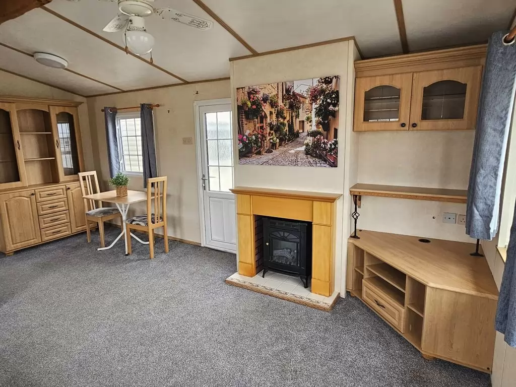 Extra široký, KRÁSNÝ, kompletně vybavený mobilheim 11,3 x 3,7m se dvěma vchody, SEDLOVOU STŘECHOU s IMITACÍ STŘEŠNÍCH TAŠEK, DVOJITÝMI (izolačními) OKNY - dithermy , CENTRÁLNÍ VYTÁPĚNÍ - elektrokotel + radiátory ve všech pokojích, elektrický krb v obývacím pokoji.Prostorný obývací pokoj ( rozkládací sedačka ), jídelní kout, kuchyň ve tvaru U včetně spotřebičů , ložnice ( dvoulůžko ), pokoj ( lůžko ), koupelna se sprchovým koutem s pevnou zástěnou a termostatickou baterií + wc. Elektrický bojler na ohřev vody. Zvýšený strop v celém mobilheimu !