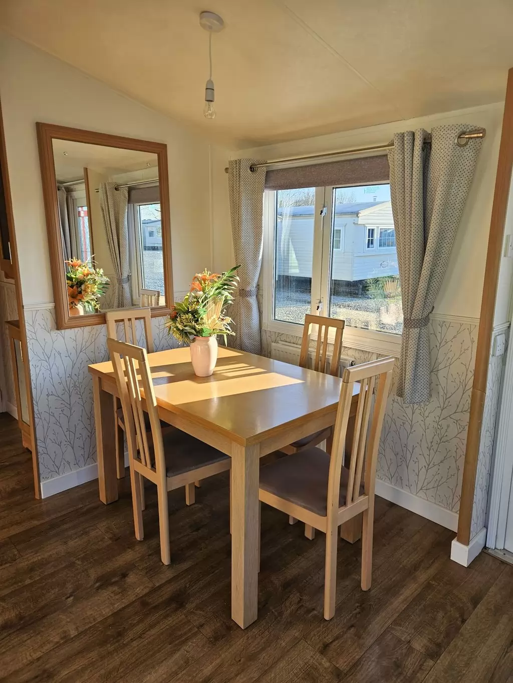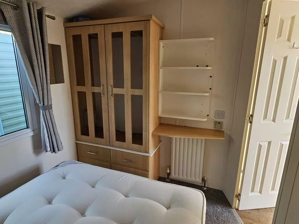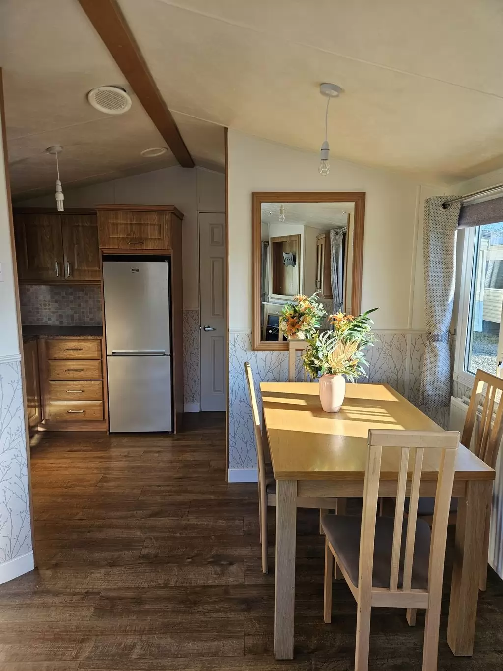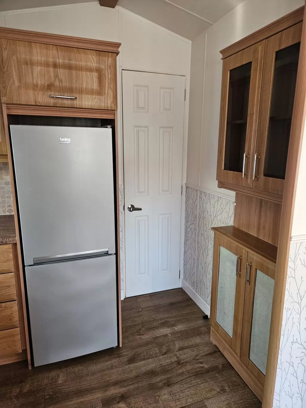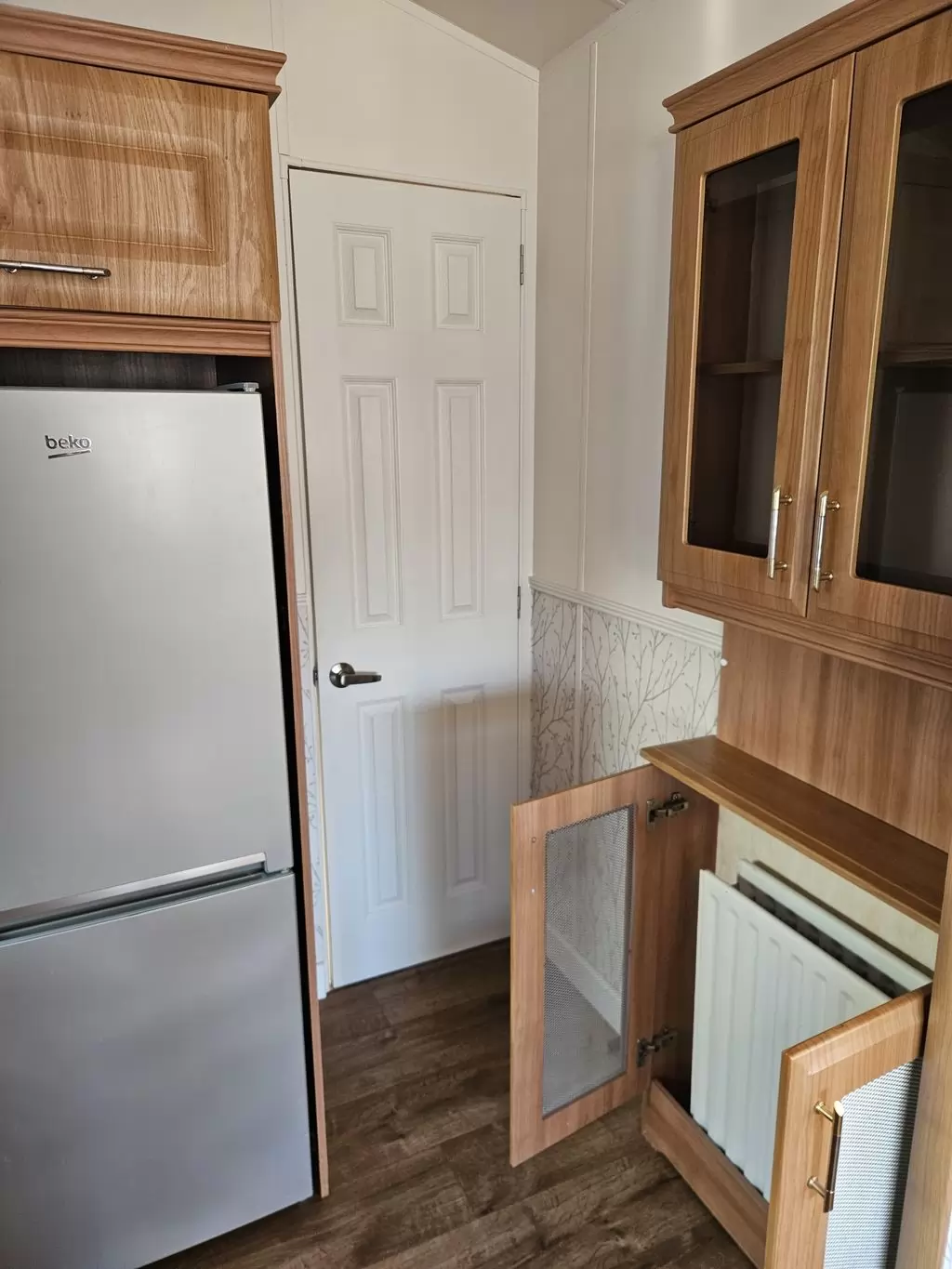 Extra široký, KRÁSNÝ, čistý, kompletně vybavený mobilheim 11,8 x 3,7m se dvěma vchody, SEDLOVOU STŘECHOU S IMITACÍ STŘEŠNÍCH TAŠEK, DVOJITÝMI (izolačními) OKNY A DVEŘMI - dithermy, CENTRÁLNÍM VYTÁPĚNÍM - plynový kotel + radiátory ve všech místnostech + elektrický krb v obývacím pokoji. Prostorný obývací pokoj, jídelní kout, kuchyň ve tvaru U včetně spotřebičů, ložnice ( dvoulůžko ), pokoj ( 2 lůžka ), pokoj ( 2 lůžka ), koupelna se sprchovým koutem s pevnou zástěnou a termostatickou baterií, wc s umyvadlem zvlášť. Zvýšený strop v celém mobilheimu !!