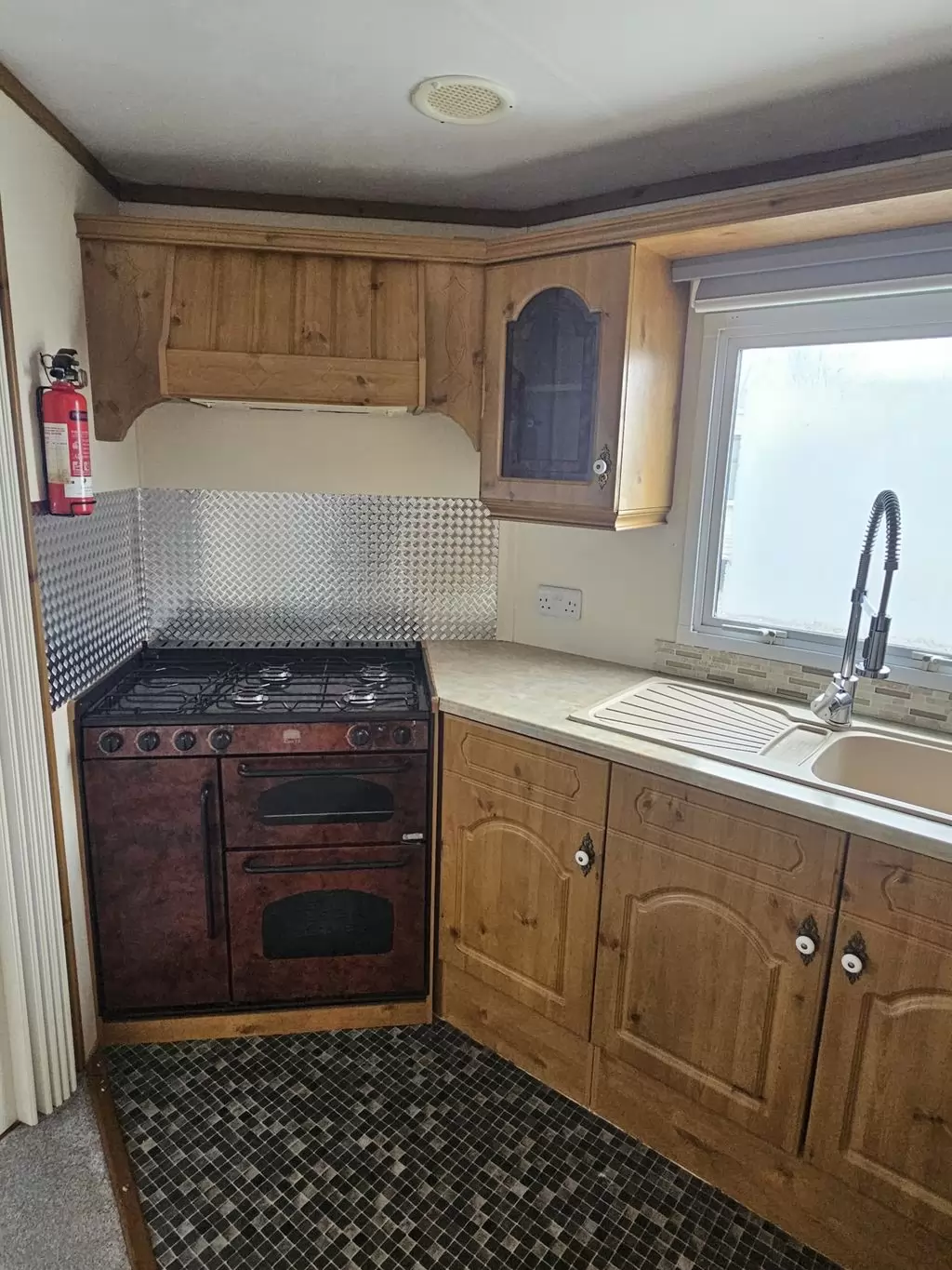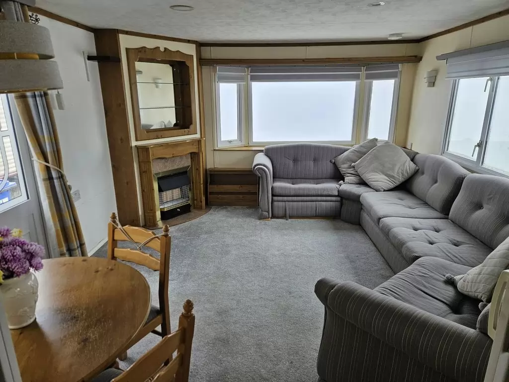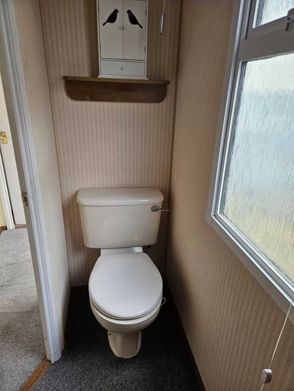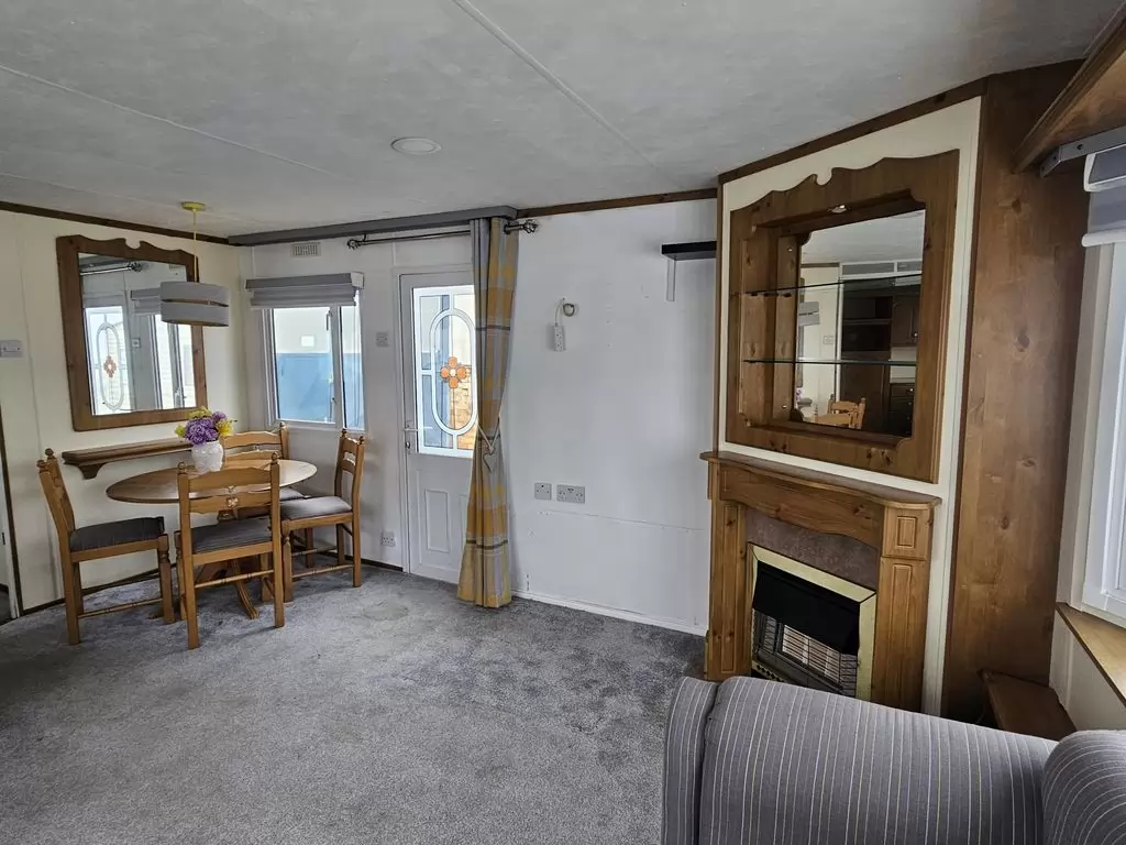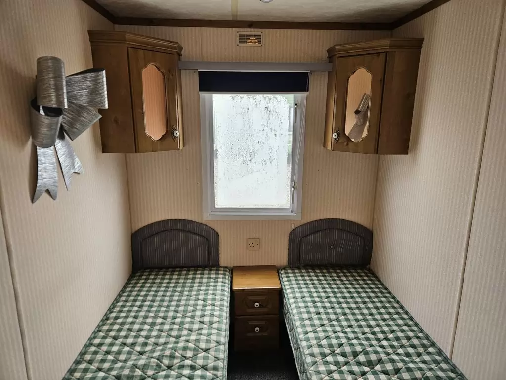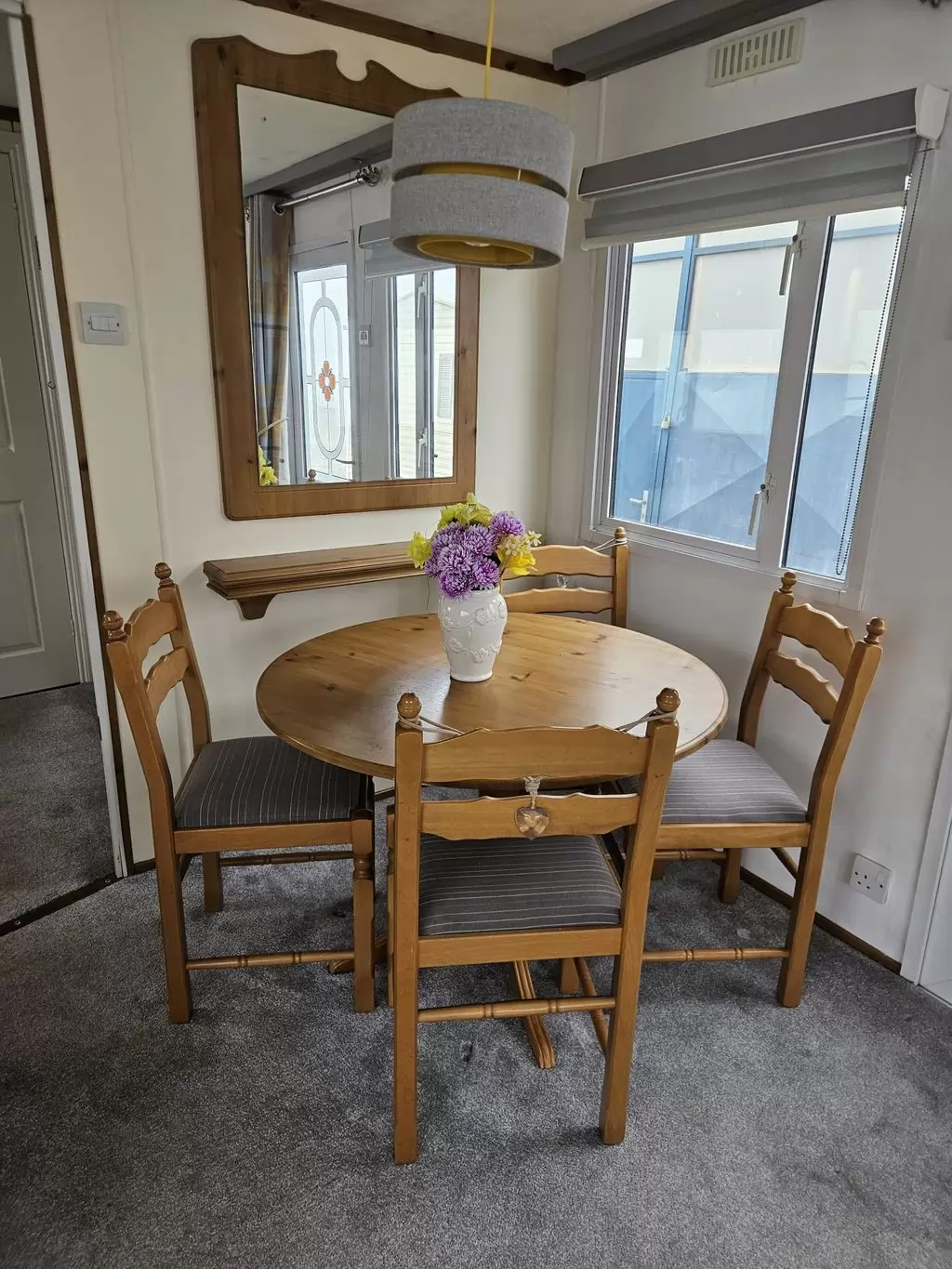 Extra široký, krásný, kompletně vybavený mobilheim 11,5 x 3,7m se dvěma vchody, DVOJITÝMI (izolačními) OKNY A DVEŘMI - dithermy. Prostorný obývací pokoj ( rozkládací sedačka ), jídelní kout, kuchyň ve tvaru U včetně spotřebičů, ložnice ( dvoulůžko ) + wc s umyvadlem, pokoj ( 2 lůžka ), koupelna se sprchovým koutem s pevnou zástěnou a sedací vaničkou + wc. Plynový krb + el. přímotop, plynová karma na ohřev vody. Zvýšený strop v celém mobilheimu !!