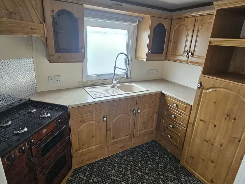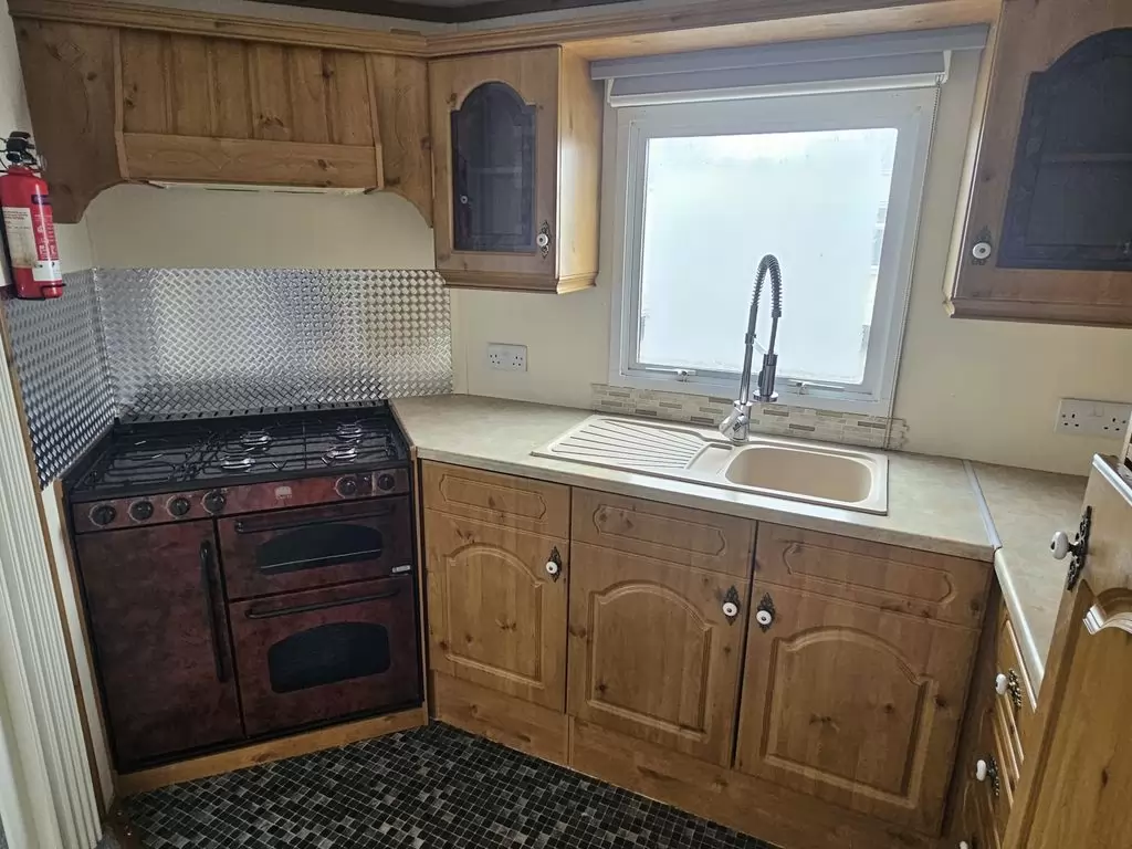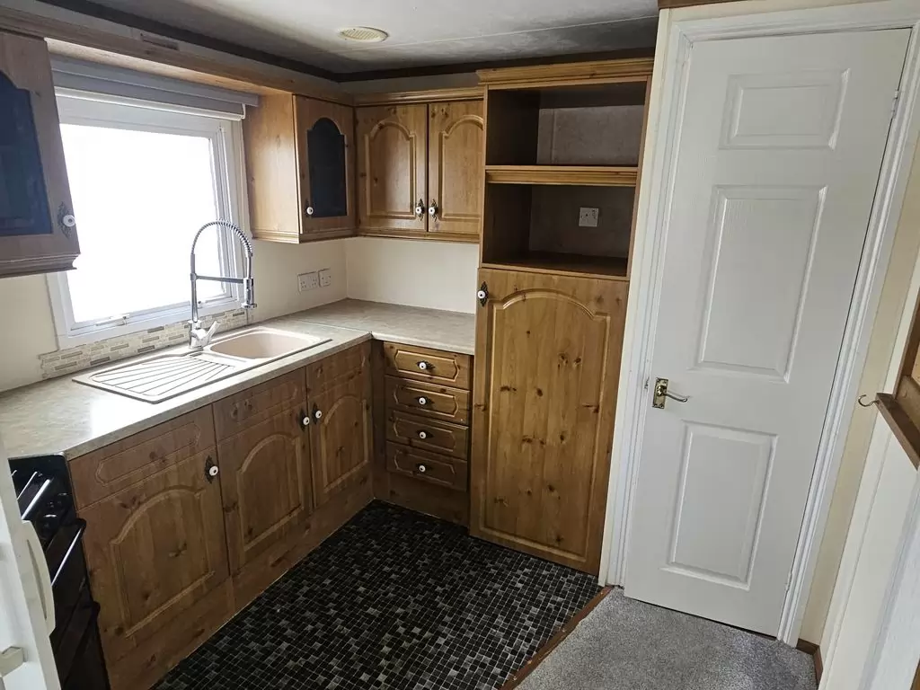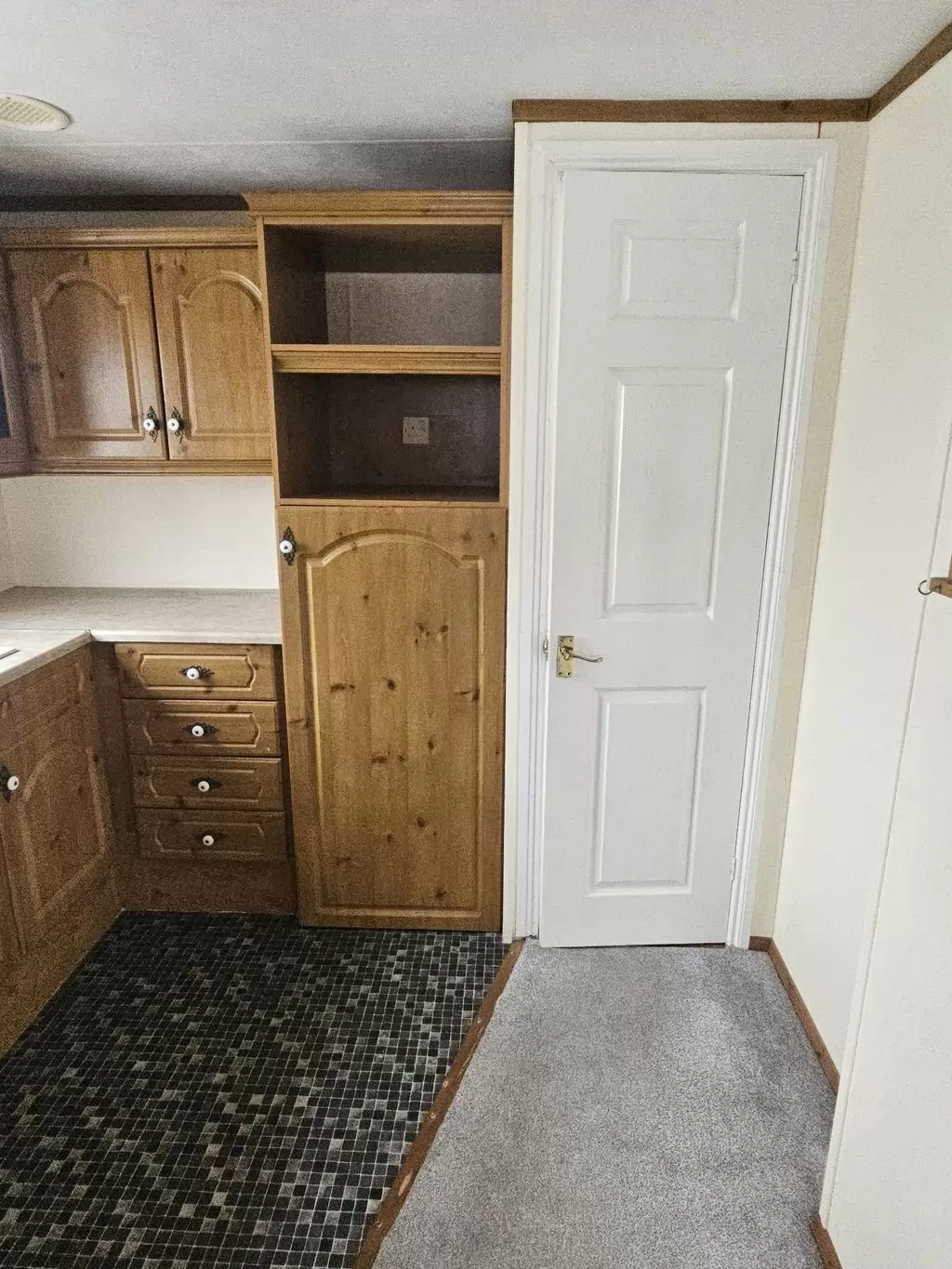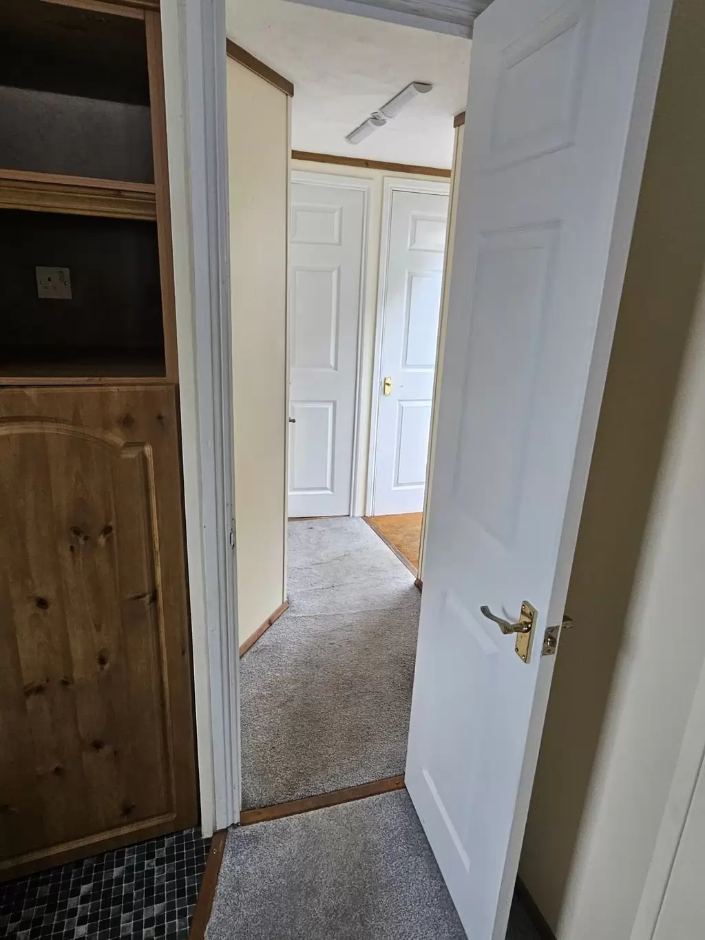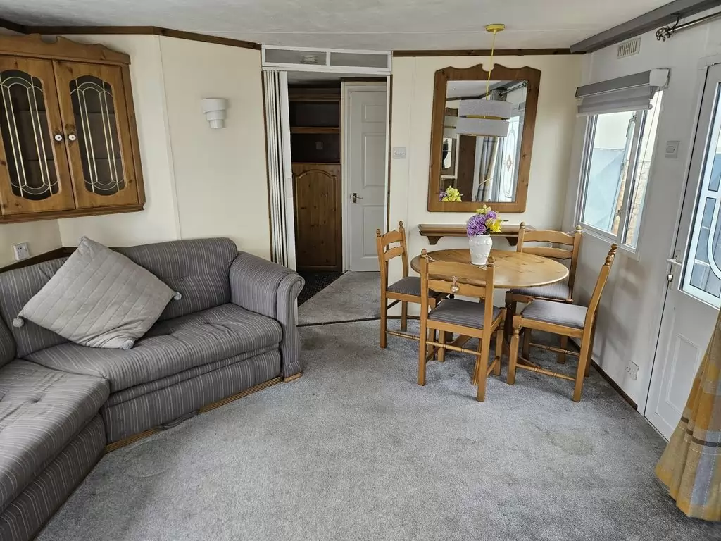 Extra široký, krásný, kompletně vybavený mobilheim 11,5 x 3,7m se dvěma vchody, DVOJITÝMI (izolačními) OKNY A DVEŘMI - dithermy. Prostorný obývací pokoj ( rozkládací sedačka ), jídelní kout, kuchyň ve tvaru U včetně spotřebičů, ložnice ( dvoulůžko ) + wc s umyvadlem, pokoj ( 2 lůžka ), koupelna se sprchovým koutem s pevnou zástěnou a sedací vaničkou + wc. Plynový krb + el. přímotop, plynová karma na ohřev vody. Zvýšený strop v celém mobilheimu !!