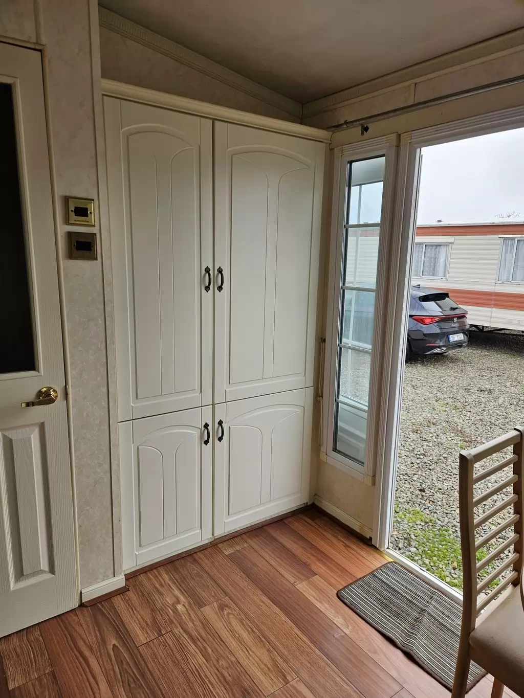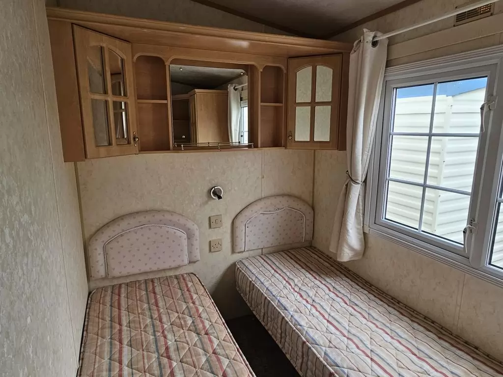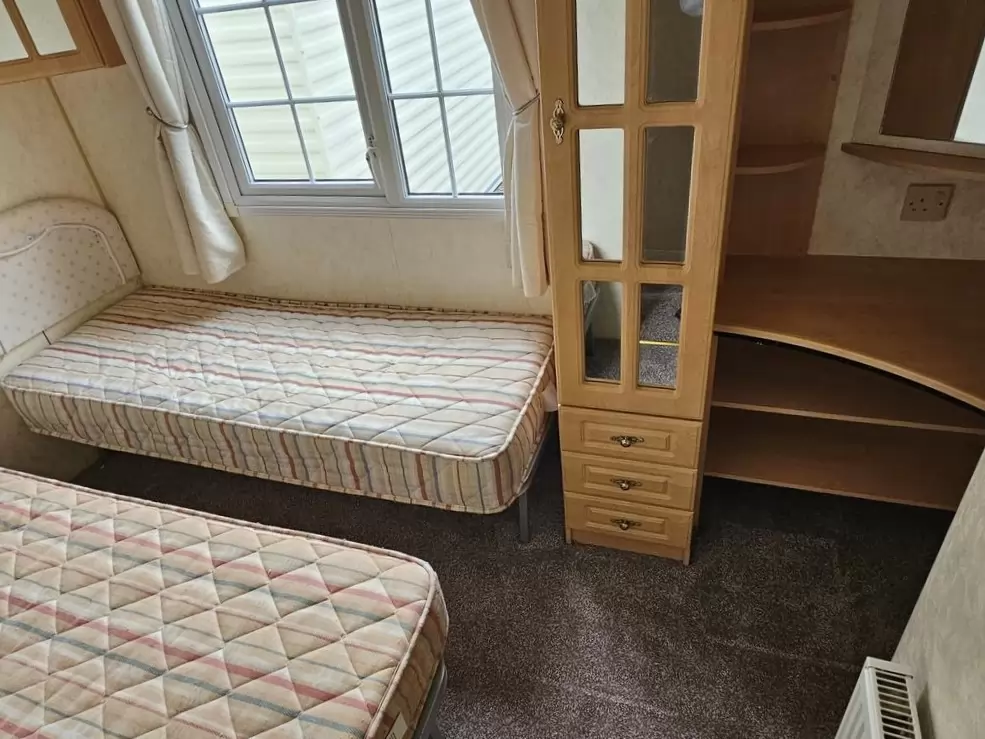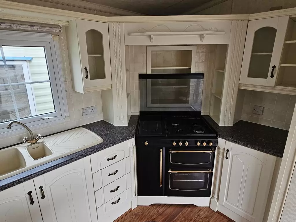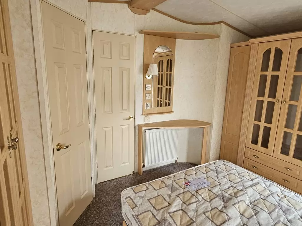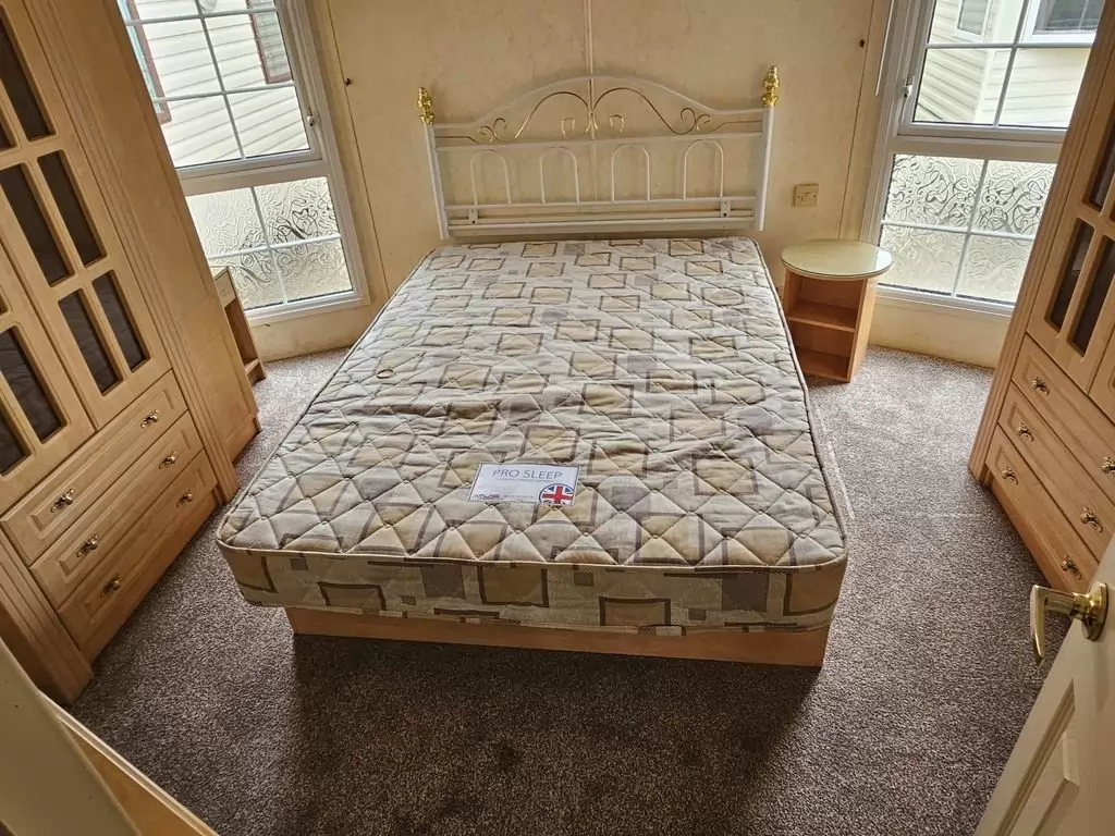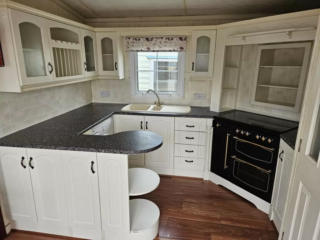 Extra široký, NÁDHERNÝ, čistý, kompletně vybavený mobilheim 12,5 x 3,7m s jedním vchodem s arkýřem, SEDLOVOU STŘECHOU S IMITACÍ STŘEŠNÍCH TAŠEK, DVOJITÝMI (izolačními) OKNY A DVEŘMI - dithermy s imitací okenic, CENTRÁLNÍM VYTÁPĚNÍM - plynový kotel + radiátory ve všech místnostech + elektrický krb v obývacím pokoji. Prostorný obývací pokoj ( rozkládací sedačka ), jídelní kout, kuchyň ve tvaru U včetně spotřebičů + pračka, prostorná ložnice (dvoulůžko s úložným prostorem) + vlastní wc s umyvadlem, pokoj ( 2 lůžka ), koupelna se sprchovým koutem s pevnou zástěnou, sedací vaničkou a termostatickou baterií + wc. POZINKOVANÝ RÁM !! Zvýšený strop v celém mobilheimu !!