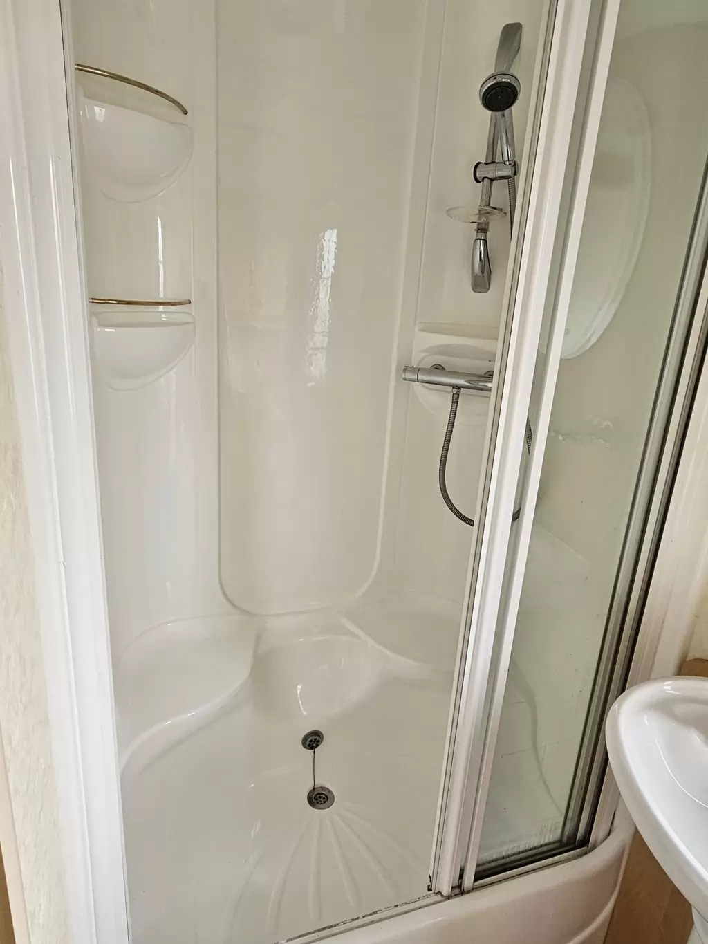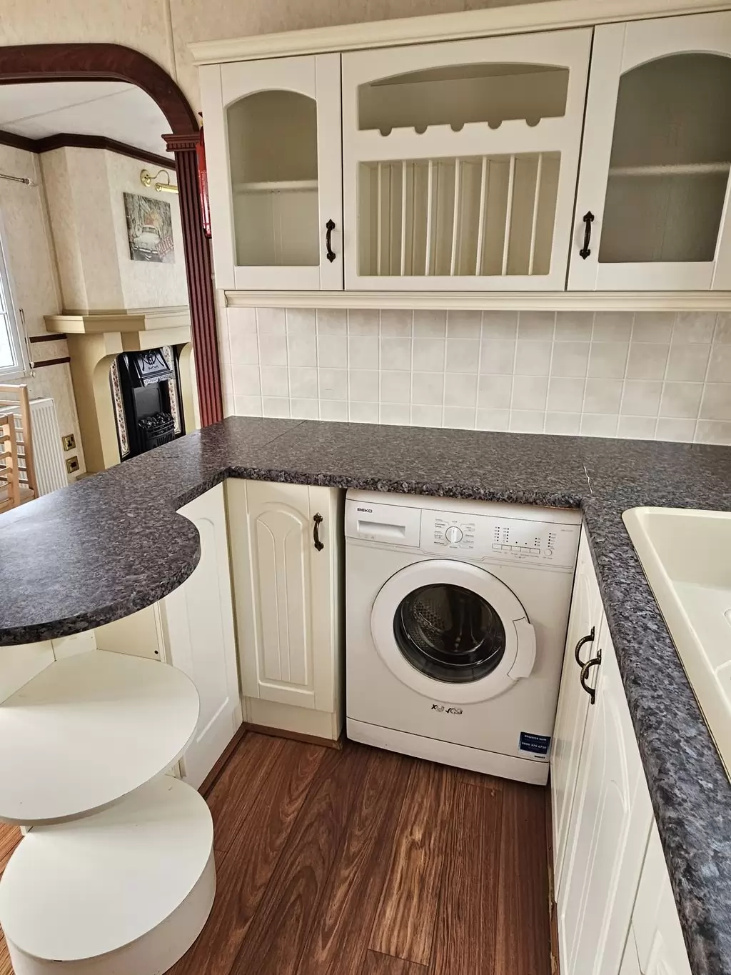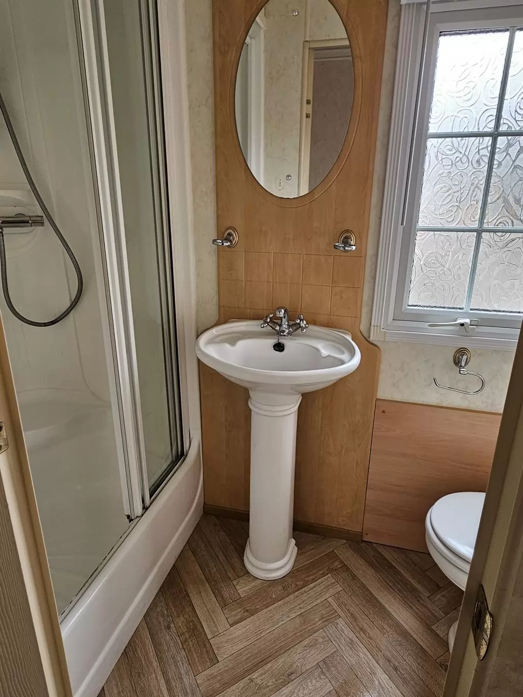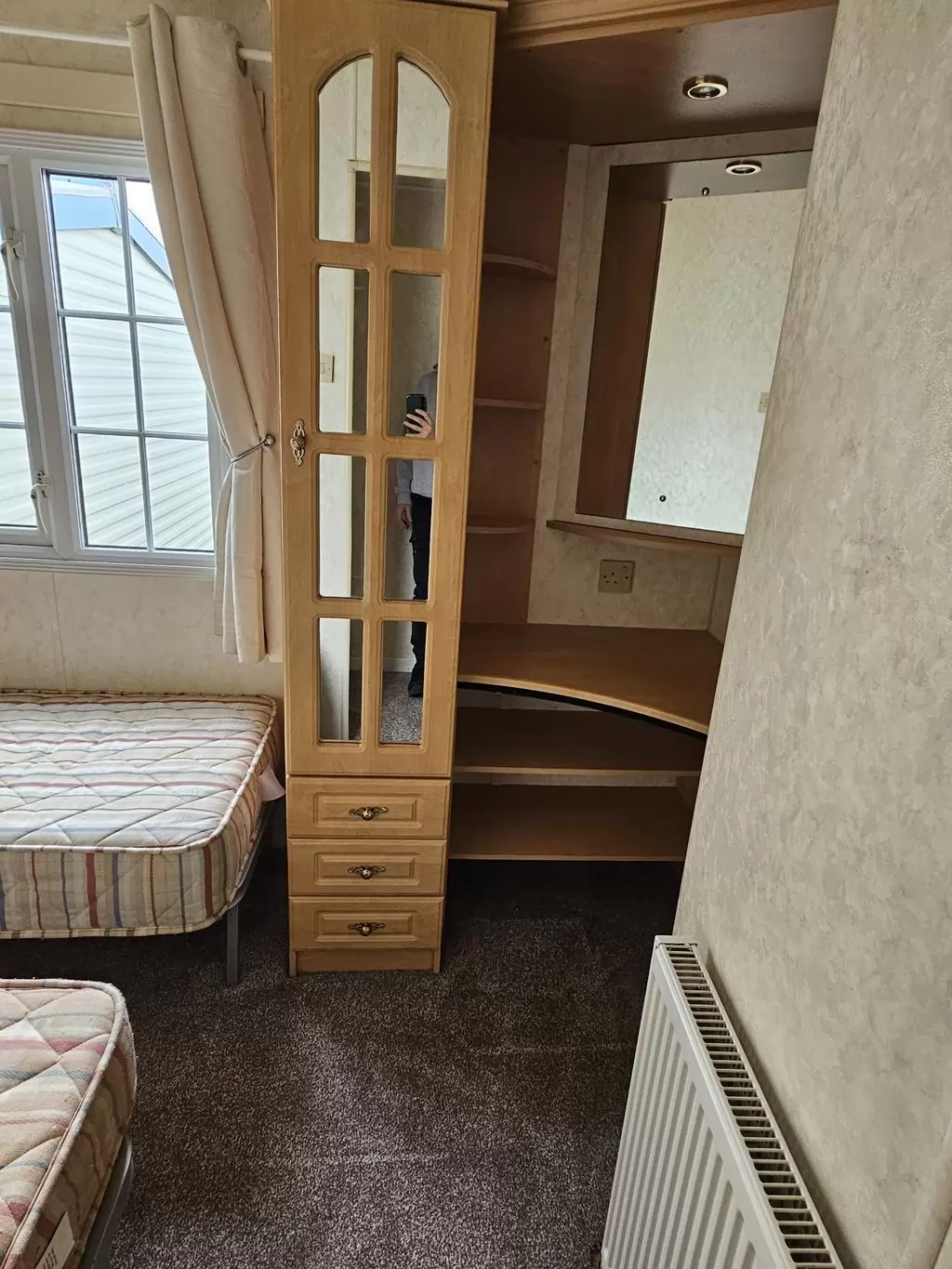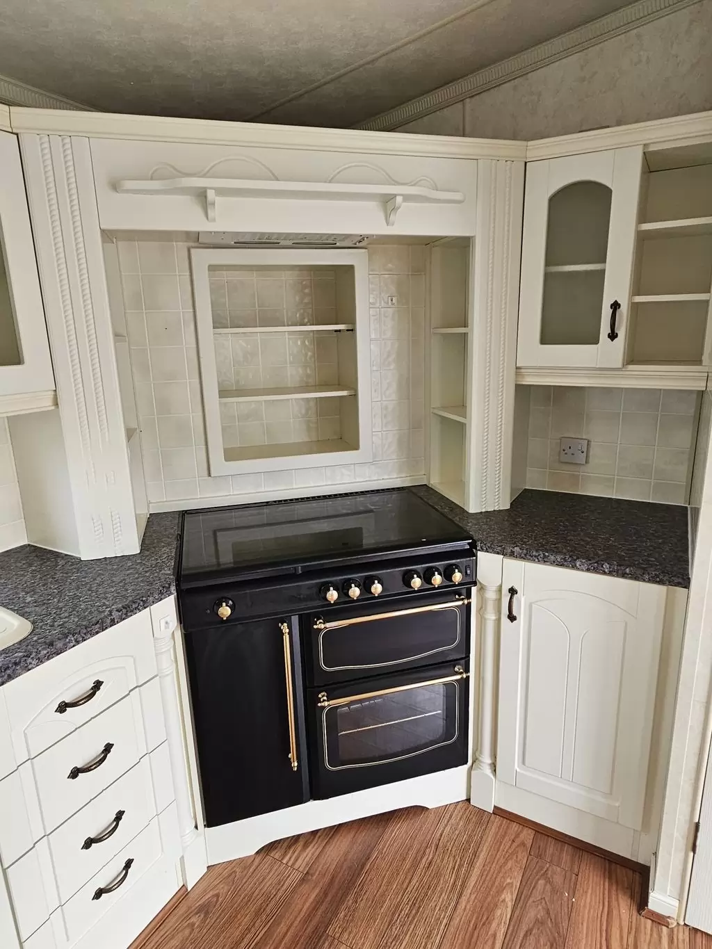 Extra široký, NÁDHERNÝ, čistý, kompletně vybavený mobilheim 12,5 x 3,7m s jedním vchodem s arkýřem, SEDLOVOU STŘECHOU S IMITACÍ STŘEŠNÍCH TAŠEK, DVOJITÝMI (izolačními) OKNY A DVEŘMI - dithermy s imitací okenic, CENTRÁLNÍM VYTÁPĚNÍM - plynový kotel + radiátory ve všech místnostech + elektrický krb v obývacím pokoji. Prostorný obývací pokoj ( rozkládací sedačka ), jídelní kout, kuchyň ve tvaru U včetně spotřebičů + pračka, prostorná ložnice (dvoulůžko s úložným prostorem) + vlastní wc s umyvadlem, pokoj ( 2 lůžka ), koupelna se sprchovým koutem s pevnou zástěnou, sedací vaničkou a termostatickou baterií + wc. POZINKOVANÝ RÁM !! Zvýšený strop v celém mobilheimu !!