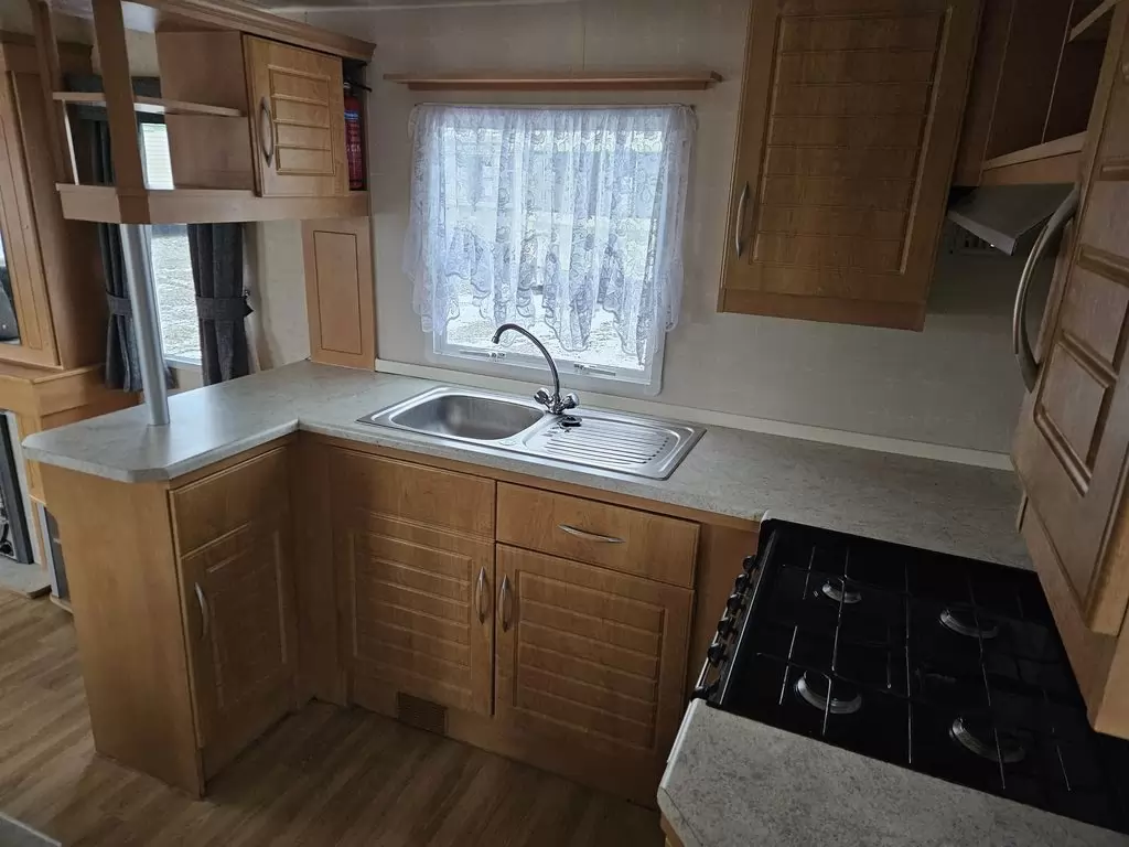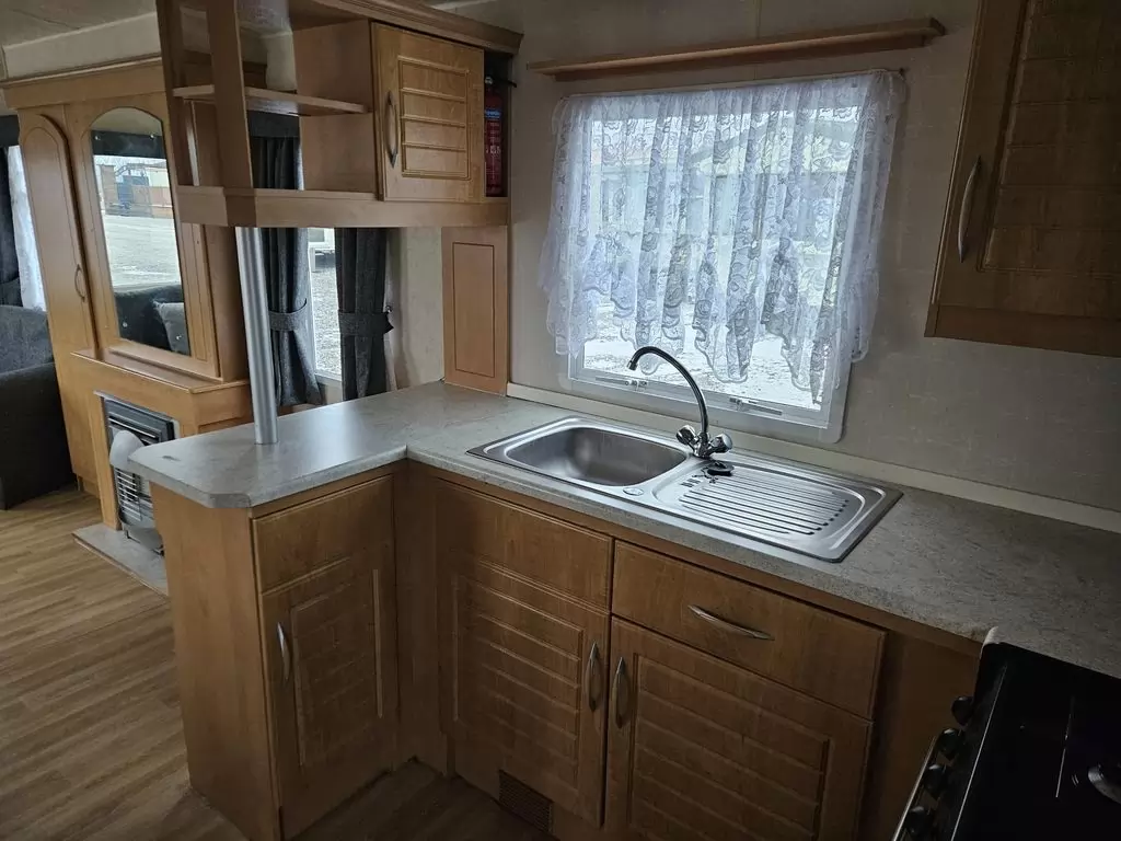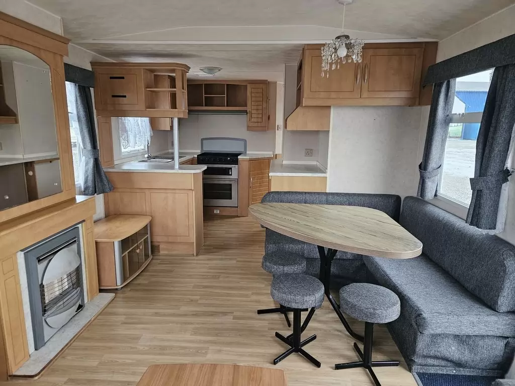 Krásný, čistý, kompletně vybavený mobilheim 11 x 3,1m se dvěma vchody, SEDLOVOU STŘECHOU, DVOJITÝMI ( izolačními ) OKNY A DVEŘMI - dithermy. Obývací pokoj ( rozkládací sedačka ), jídelní kout, kuchyň ve tvaru U, ložnice, pokoj ( 2 lůžka ), pokoj ( 2 lůžka ), koupelna se sprchovým koutem s pevnou zástěnou, wc zvlášť. Plynový krb + el. přímotopy, plynová karma na ohřev vody. Zvýšený strop !