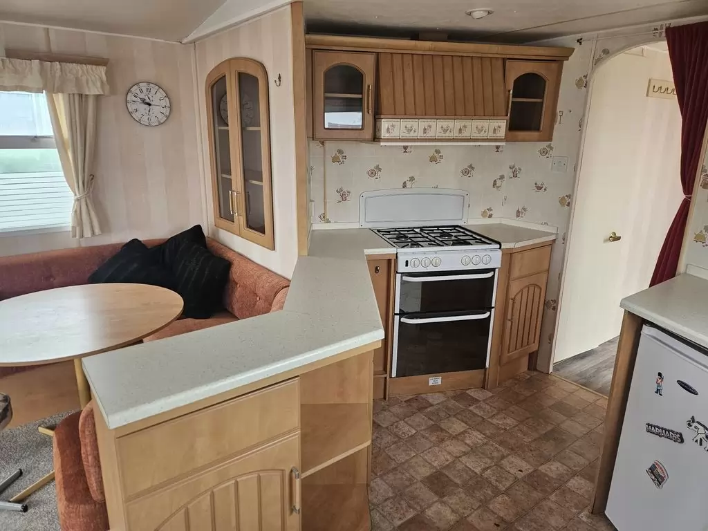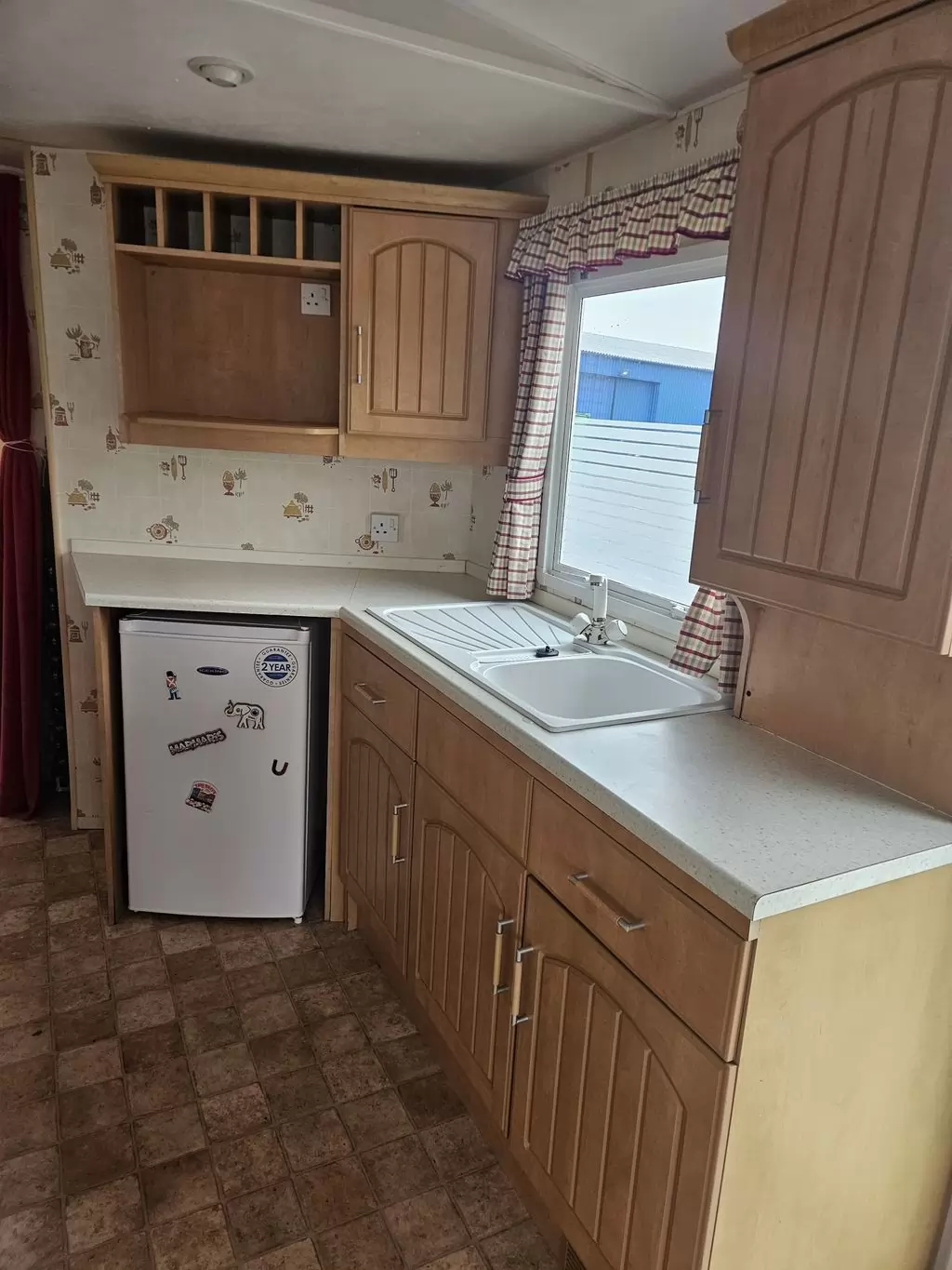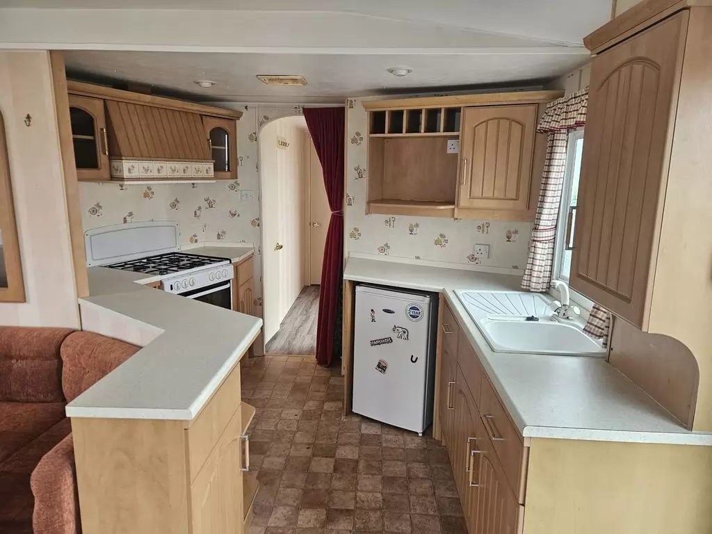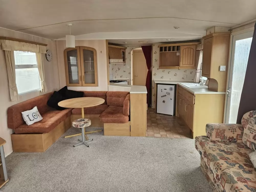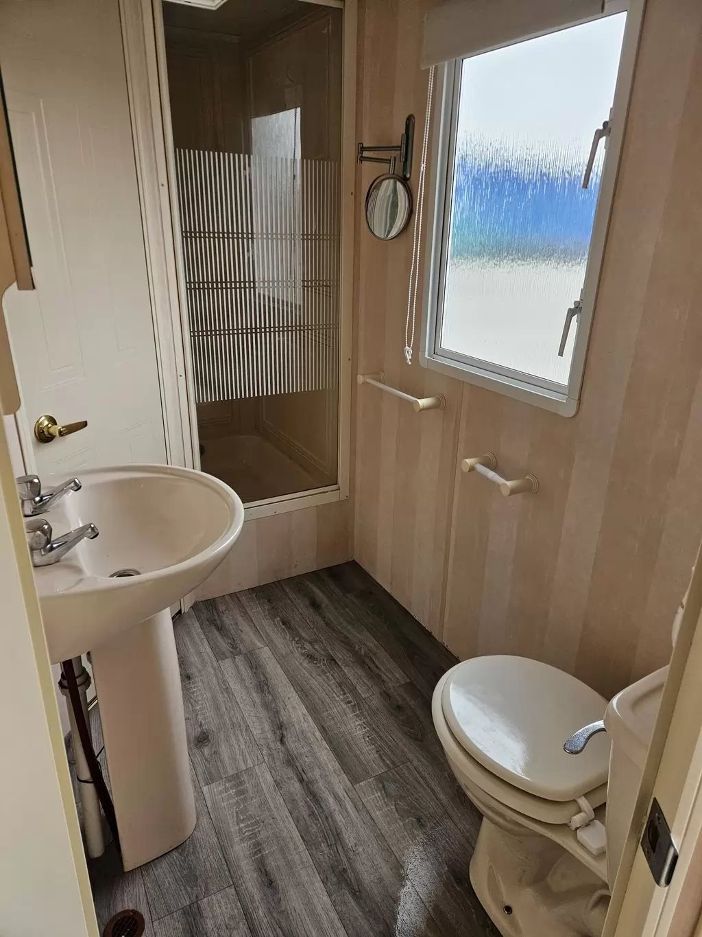 Extra široký, KRÁSNÝ, kompletně vybavený mobilheim 11,1 x 3,7m se dvěma vchody, SEDLOVOU STŘECHOU, DVOJITÝMI (izolačními) OKNY A DVEŘMI - dithermy. Prostorný obývací pokoj ( rozkládací sedačka ), jídelní kout, kuchyň včetně spotřebičů, ložnice ( dvoulůžko ), pokoj ( 2 lůžka ), koupelna se sprchovým koutem s pevnou zástěnou + wc, druhé wc s umyvadlem zvlášť. Plynový krb, plynová karma na ohřev vody. Zvýšený strop !