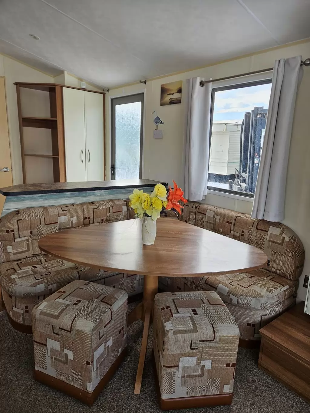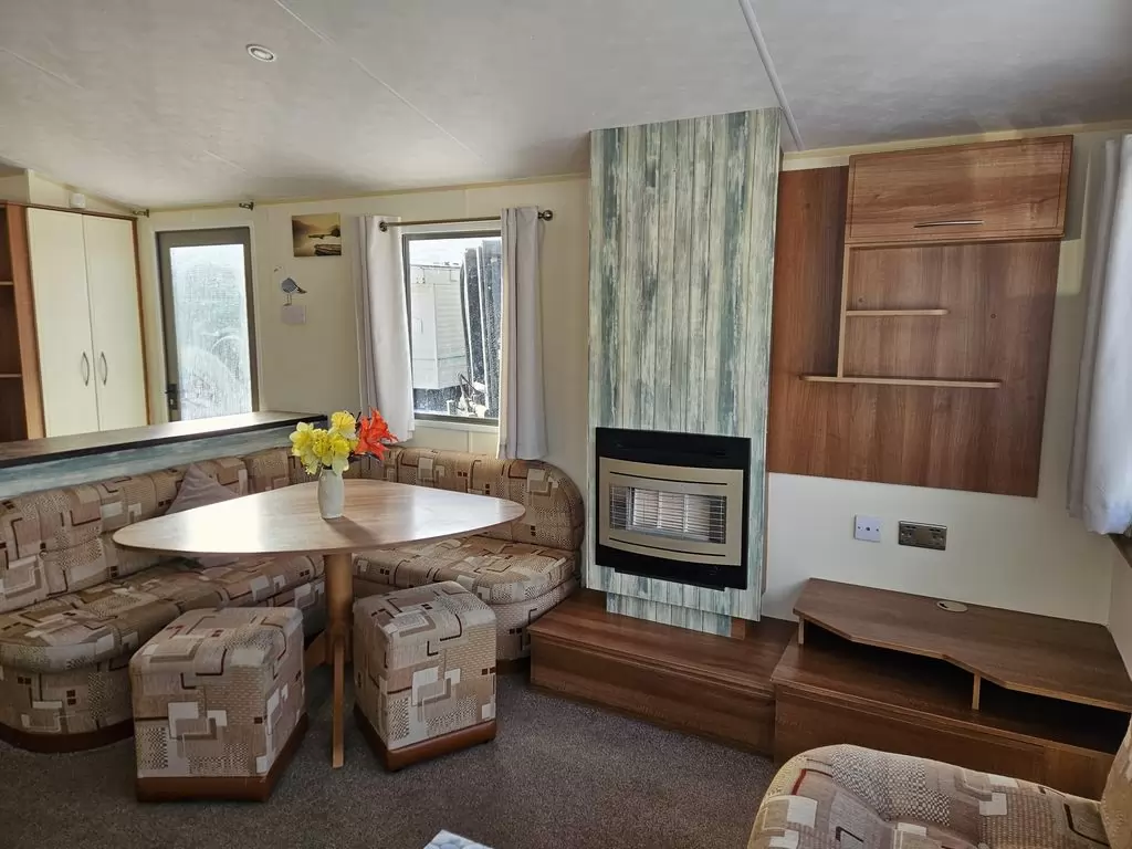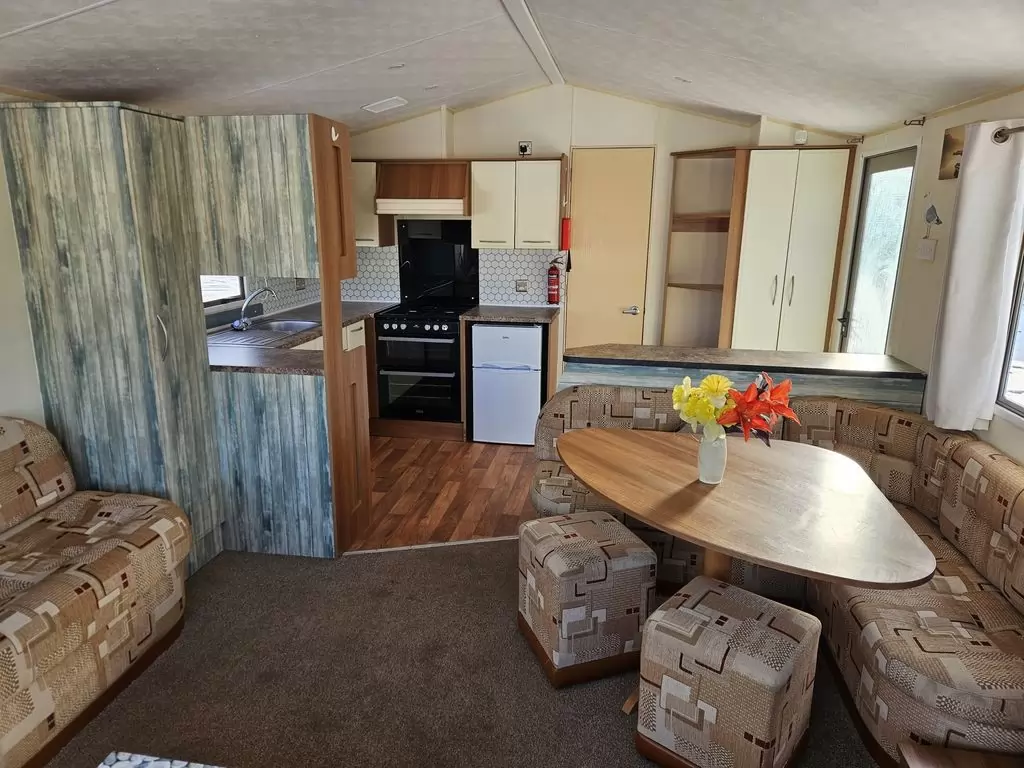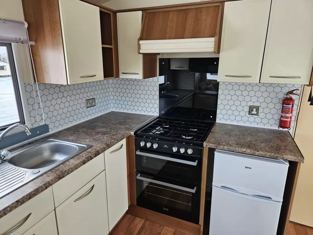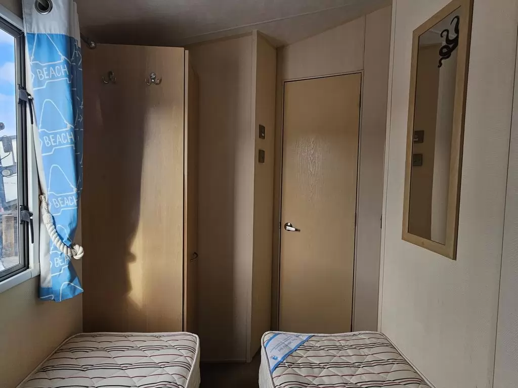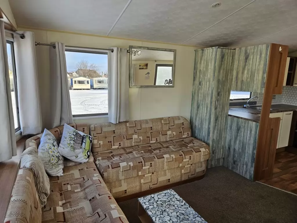 Extra široký, KRÁSNÝ, čistý, kompletně vybavený mobilheim 10,8 x 3,7m s jedním vchodem , SEDLOVOU STŘECHOU S IMITACÍ STŘEŠNÍCH TAŠEK, DVOJITÝMI (izolačními) OKNY A DVEŘMI - dithermy. Prostorný obývací pokoj ( rozkládací sedačka ), jídelní kout, kuchyň ve tvaru U včetně spotřebičů, ložnice ( dvoulůžko ), pokoj ( 2 lůžka ), pokoj ( 2 lůžka ), koupelna se sprchovým koutem s pevnou zástěnou a termostatickou baterií, wc s umyvadlem zvlášť. Plynový krb + el. vytápění v pokojích, plynová karma na ohřev vody. Zvýšený strop v celém mobilheimu !!