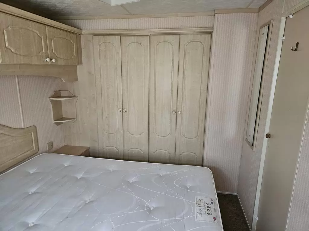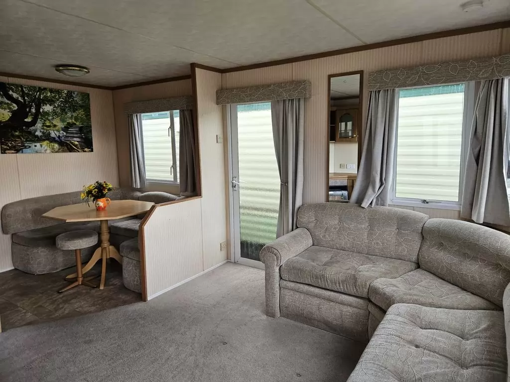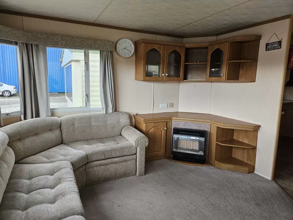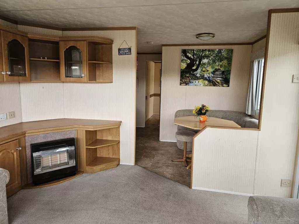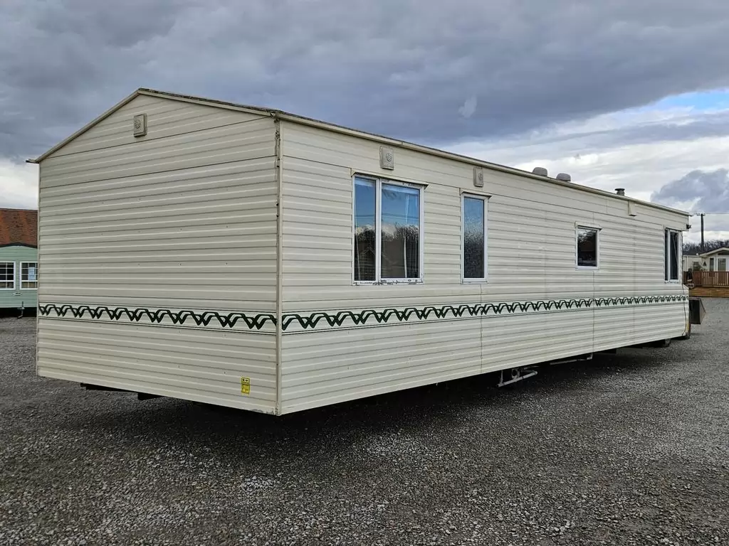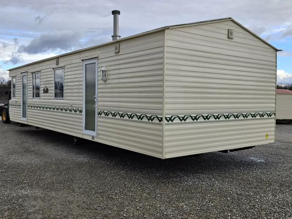 Extra široký, KRÁSNÝ, čistý, kompletně vybavený mobilheim 10,9 x 3,7m se dvěma vchody, SEDLOVOU STŘECHOU, DVOJITÝMI (izolačními) OKNY A DVEŘMI - dithermy. Prostorný obývací pokoj ( rozkládací sedačka ), jídelní kout, kuchyň ve tvaru L, ložnice ( dvoulůžko s úložným prostorem ), pokoj ( 2 lůžka ), koupelna se sprchovým koutem s pevnou zástěnou a sedací vaničkou + wc. Plynový krb, plynová karma na ohřev vody. Zvýšený strop v celém mobilheimu !!
