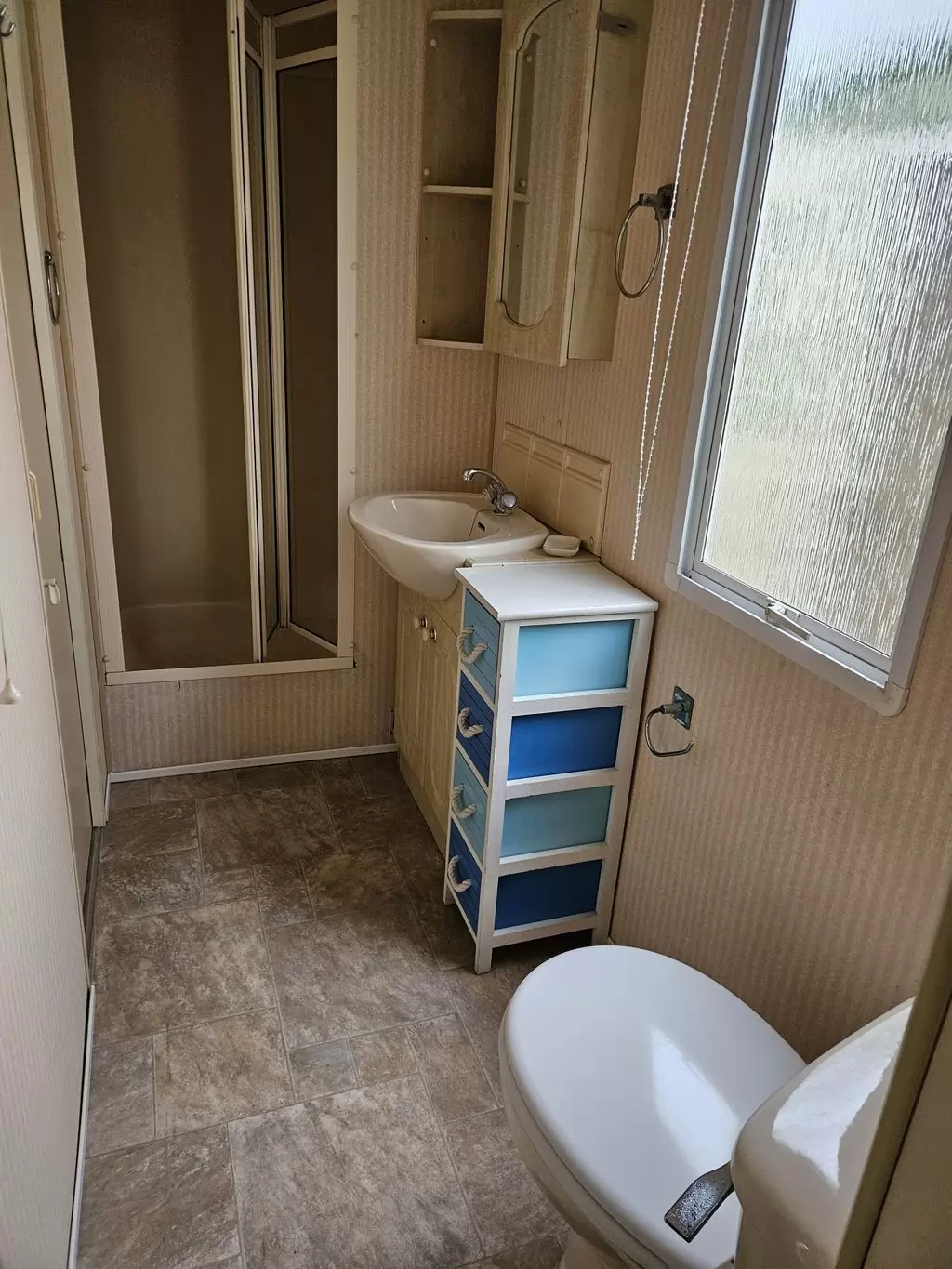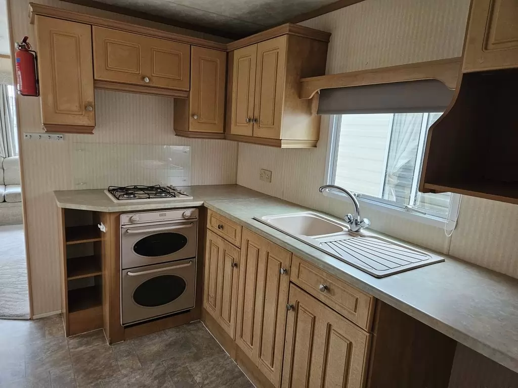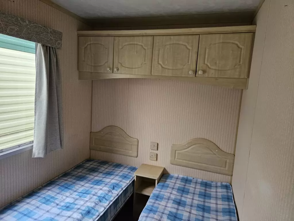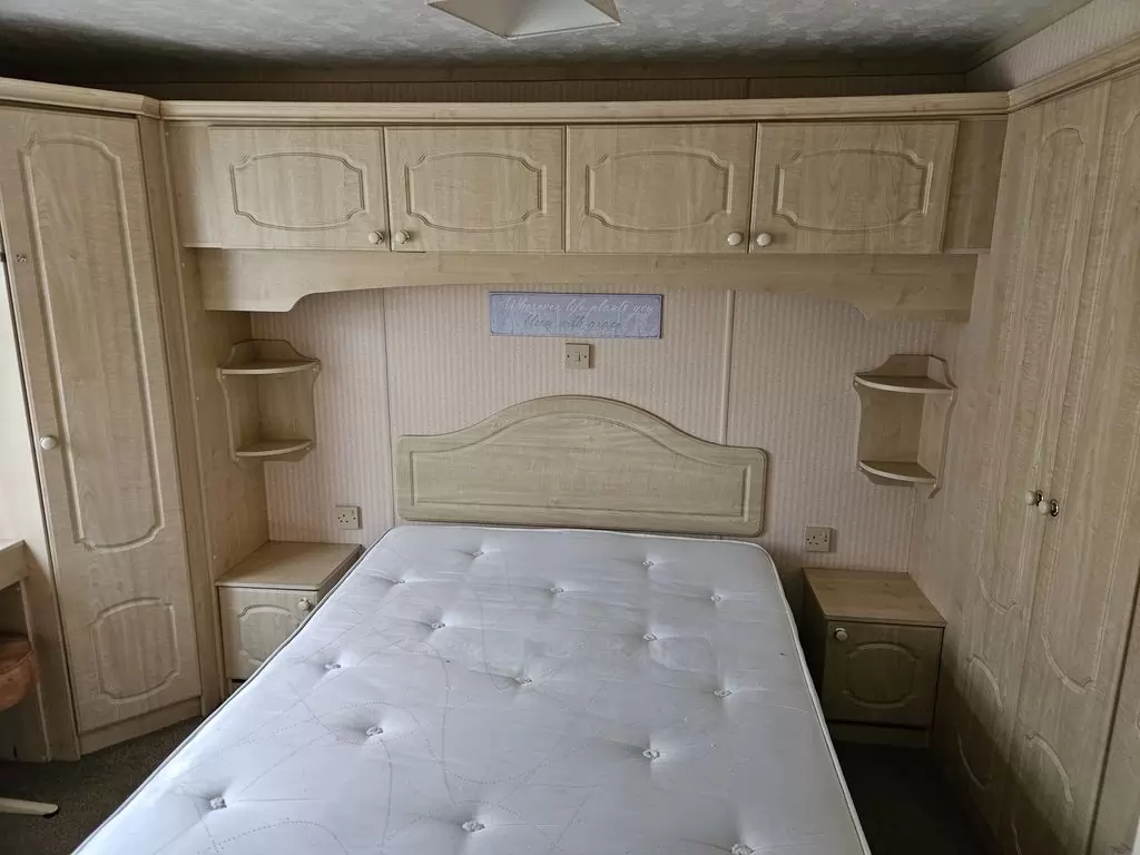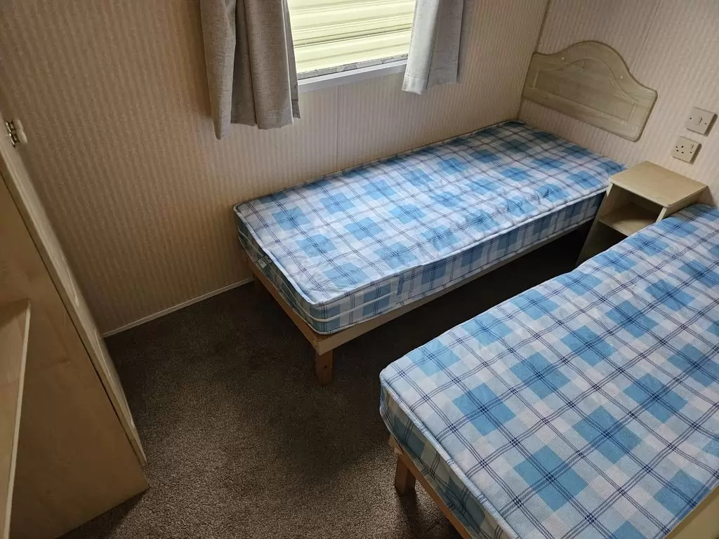 Extra široký, KRÁSNÝ, čistý, kompletně vybavený mobilheim 10,9 x 3,7m se dvěma vchody, SEDLOVOU STŘECHOU, DVOJITÝMI (izolačními) OKNY A DVEŘMI - dithermy. Prostorný obývací pokoj ( rozkládací sedačka ), jídelní kout, kuchyň ve tvaru L, ložnice ( dvoulůžko s úložným prostorem ), pokoj ( 2 lůžka ), koupelna se sprchovým koutem s pevnou zástěnou a sedací vaničkou + wc. Plynový krb, plynová karma na ohřev vody. Zvýšený strop v celém mobilheimu !!