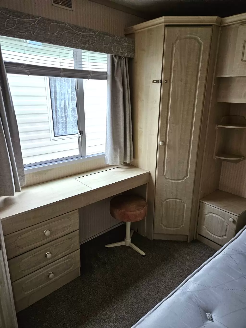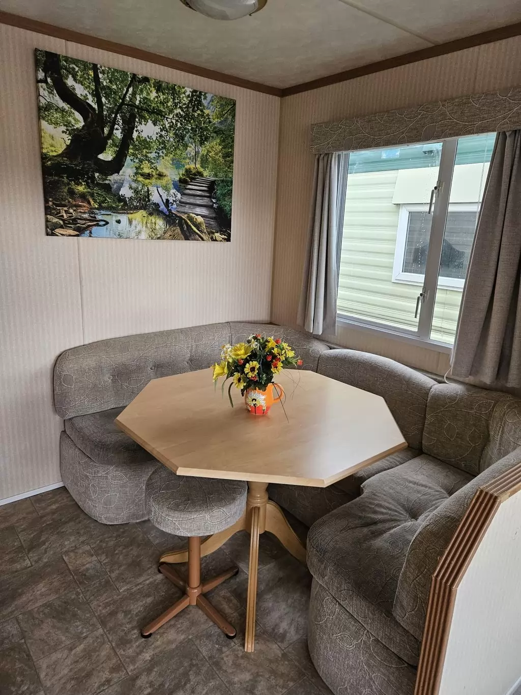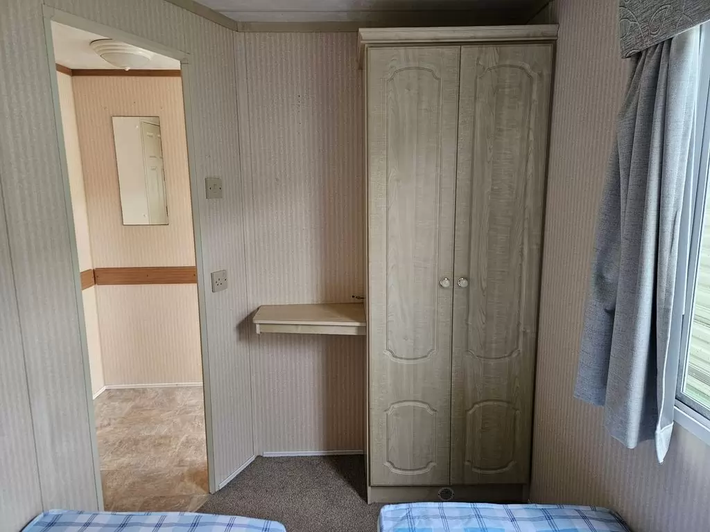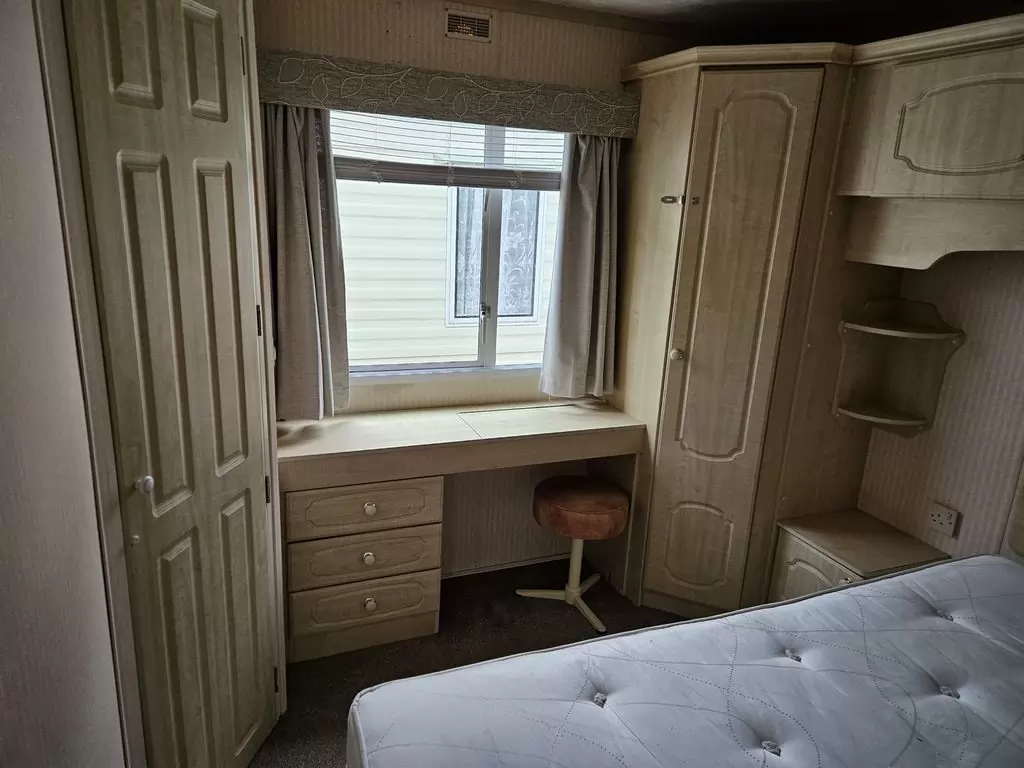 Extra široký, KRÁSNÝ, čistý, kompletně vybavený mobilheim 10,9 x 3,7m se dvěma vchody, SEDLOVOU STŘECHOU, DVOJITÝMI (izolačními) OKNY A DVEŘMI - dithermy. Prostorný obývací pokoj ( rozkládací sedačka ), jídelní kout, kuchyň ve tvaru L, ložnice ( dvoulůžko s úložným prostorem ), pokoj ( 2 lůžka ), koupelna se sprchovým koutem s pevnou zástěnou a sedací vaničkou + wc. Plynový krb, plynová karma na ohřev vody. Zvýšený strop v celém mobilheimu !!