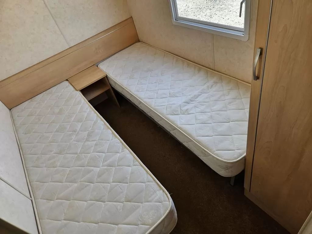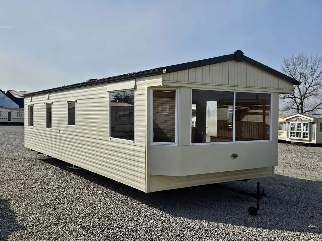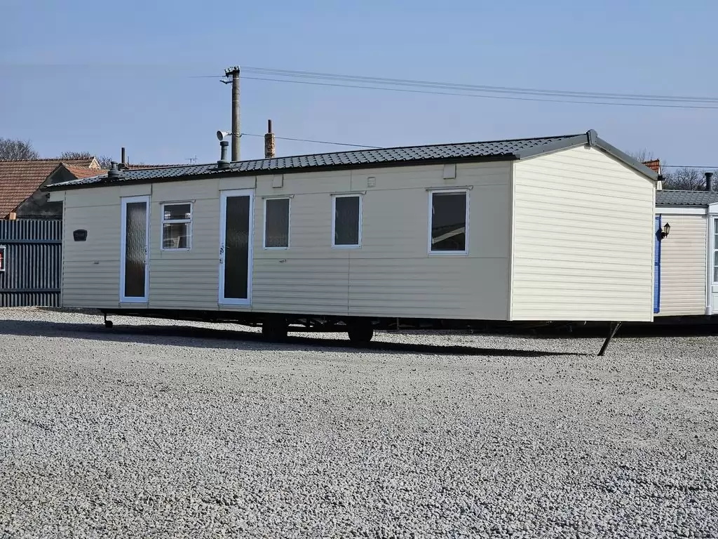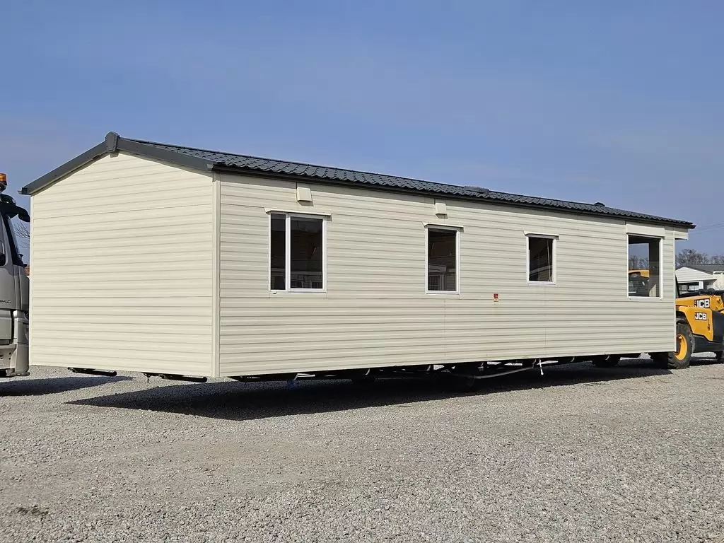 Extra široký, KRÁSNÝ, čistý, kompletně vybavený mobilheim 11,1 x 3,7m se dvěma vchody, SEDLOVOU STŘECHOU S IMITACÍ STŘEŠNÍCH TAŠEK, DVOJITÝMI (izolačními) OKNY A DVEŘMI - dithermy. Prostorný obývací pokoj ( rozkládací sedačka ), jídelní kout, kuchyň ve tvaru U včetně spotřebičů, ložnice ( dvoulůžko ), pokoj ( 2 lůžka ), pokoj ( 2 lůžka ), koupelna se sprchovým koutem s pevnou zástěnou a termostatickou baterií, wc s umyvadlem zvlášť. Plynový krb + el. přímotopy v pokojích, plynová karma na ohřev vody. Zvýšený strop v celém mobilheimu !!