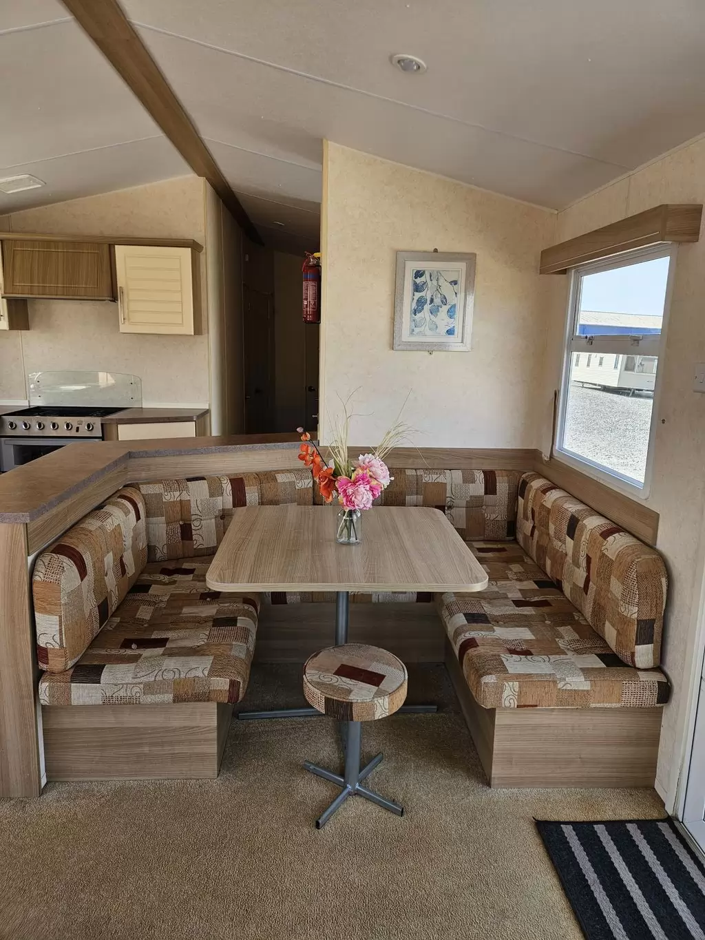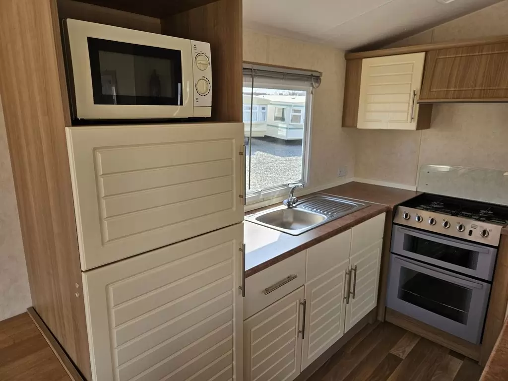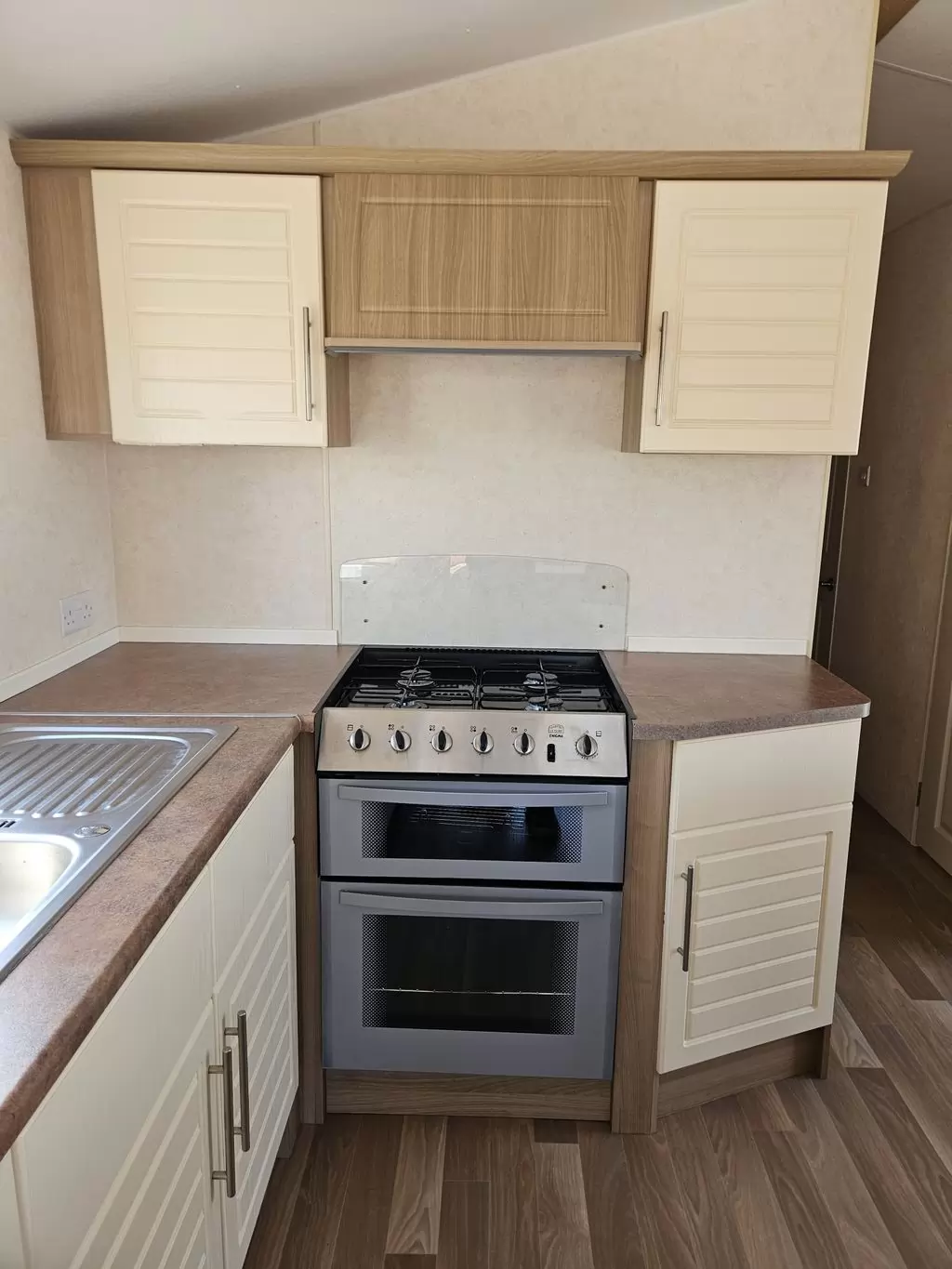 Extra široký, KRÁSNÝ, čistý, kompletně vybavený mobilheim 11,1 x 3,7m se dvěma vchody, SEDLOVOU STŘECHOU S IMITACÍ STŘEŠNÍCH TAŠEK, DVOJITÝMI (izolačními) OKNY A DVEŘMI - dithermy. Prostorný obývací pokoj ( rozkládací sedačka ), jídelní kout, kuchyň ve tvaru U včetně spotřebičů, ložnice ( dvoulůžko ), pokoj ( 2 lůžka ), pokoj ( 2 lůžka ), koupelna se sprchovým koutem s pevnou zástěnou a termostatickou baterií, wc s umyvadlem zvlášť. Plynový krb + el. přímotopy v pokojích, plynová karma na ohřev vody. Zvýšený strop v celém mobilheimu !!
