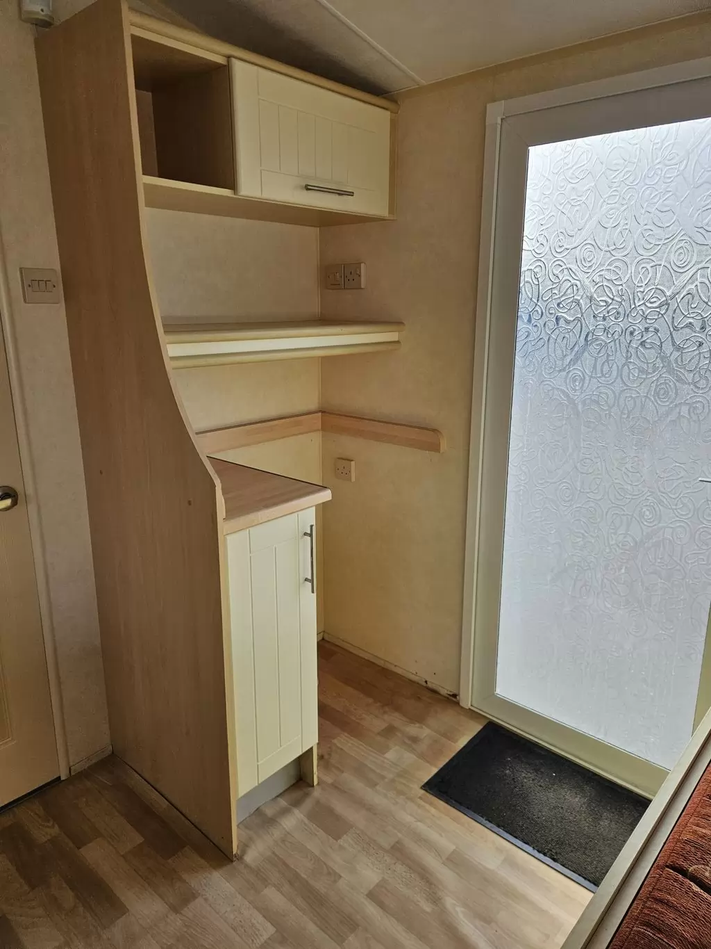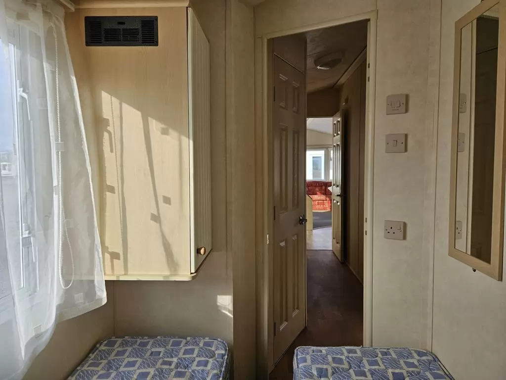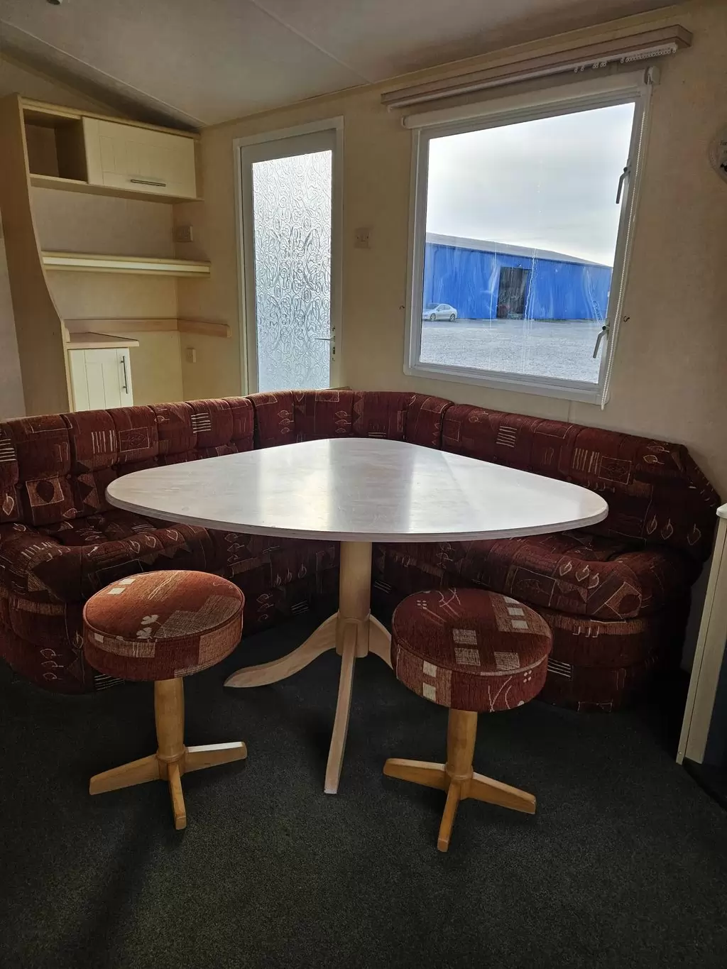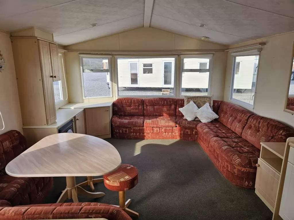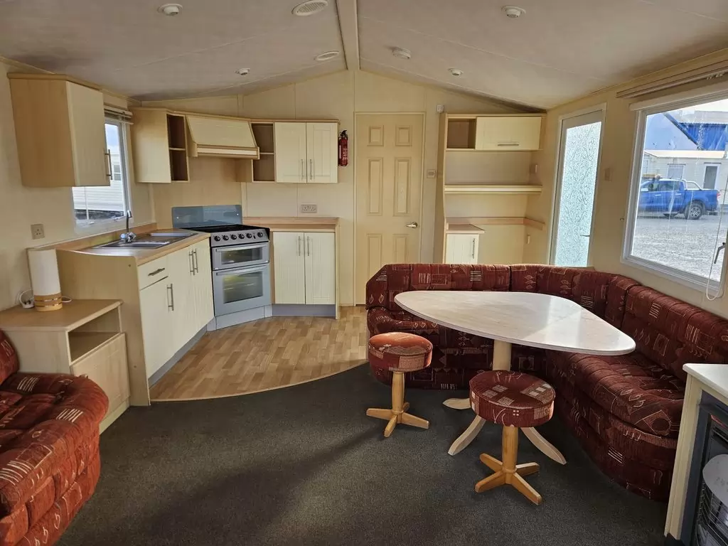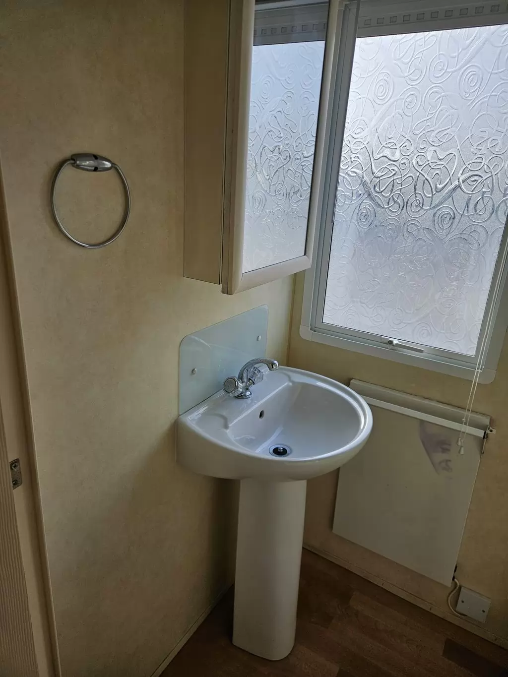 Extra široký, KRÁSNÝ, kompletně vybavený mobilheim 11 x 3,7m s jedním vchodem, SEDLOVOU STŘECHOU S IMITACÍ STŘEŠNÍCH TAŠEK, DVOJITÝMI (izolačními) OKNY A DVEŘMI - dithermy. Prostorný obývací pokoj (rozkládací sedačka ), jídelní kout, kuchyň ve tvaru L, prostorná ložnice ( dvoulůžko s úložným prostorem ), pokoj ( 2 lůžka ), pokoj ( 2 lůžka ), koupelna se sprchovým koutem s pevnou zástěnou, wc s umyvadlem zvlášť. Plynový krb + el. vytápění v pokojích, plynová karma na ohřev vody. Zvýšený strop v celém mobilheimu !!
