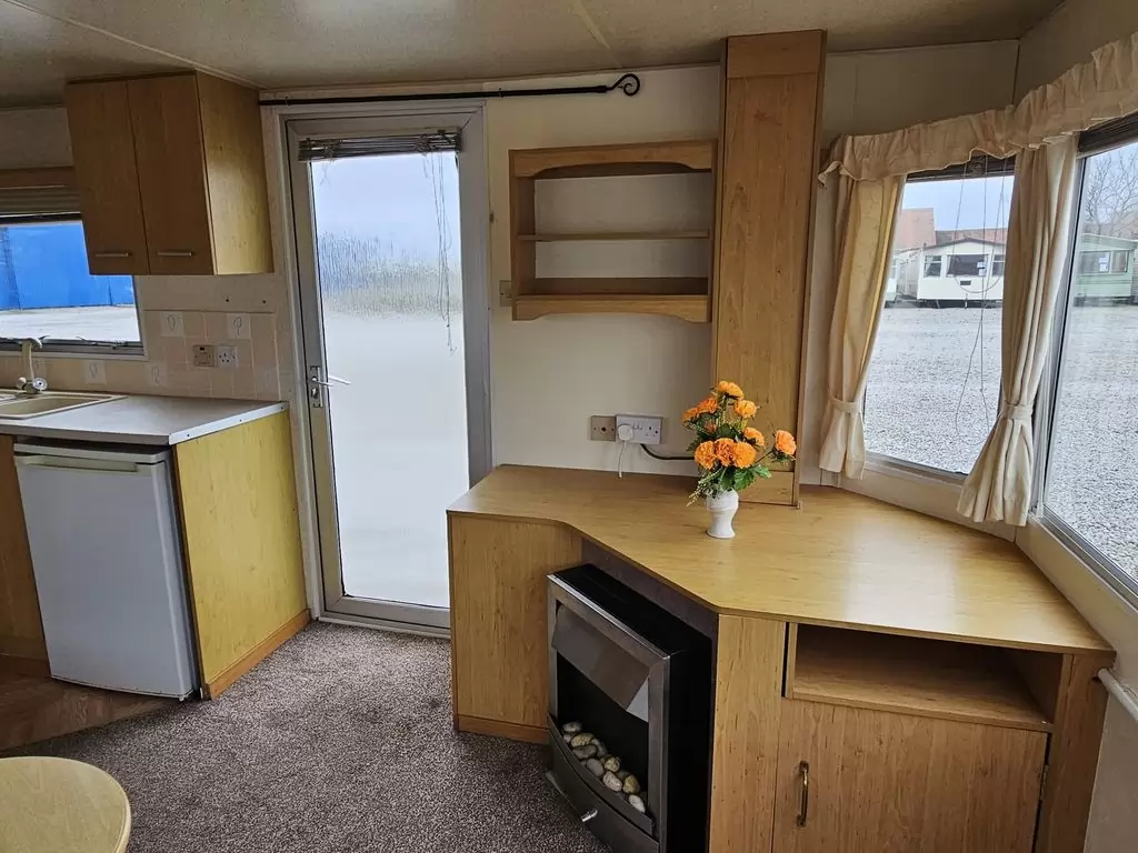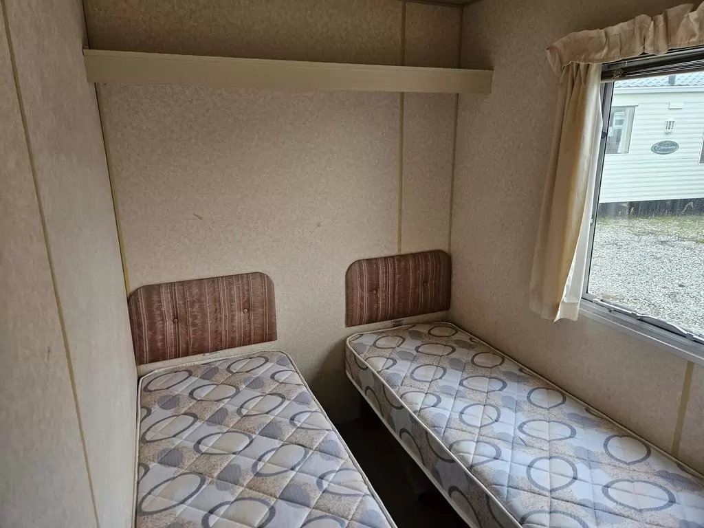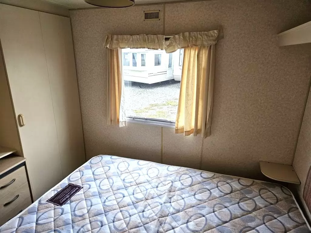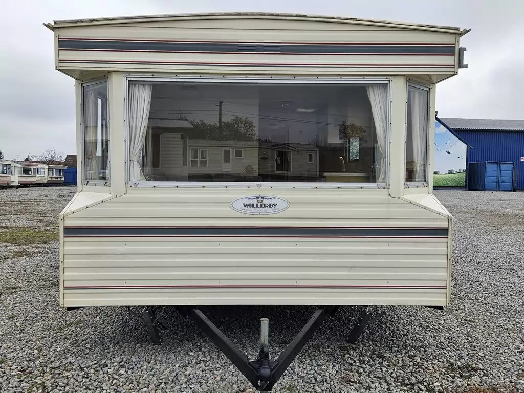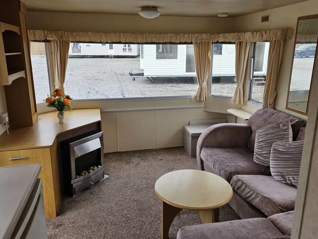 Krásný, kompletně vybavený mobilheim 8,6 x 3,1m se dvěma vchody. Obývací pokoj, jídelní kout ( rozkládací ), kuchyň včetně spotřebičů, ložnice ( dvoulůžko ), pokoj ( 2 lůžka ), koupelna se sprchovým koutem + wc. Plynový krb, plynová karma na ohřev vody.