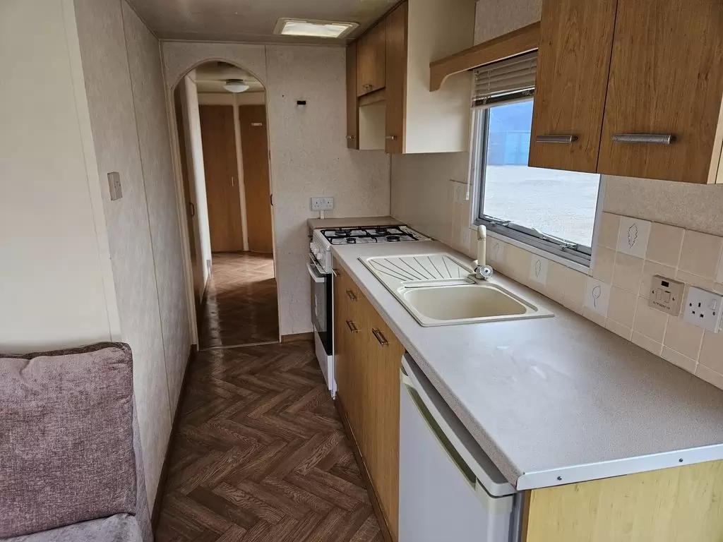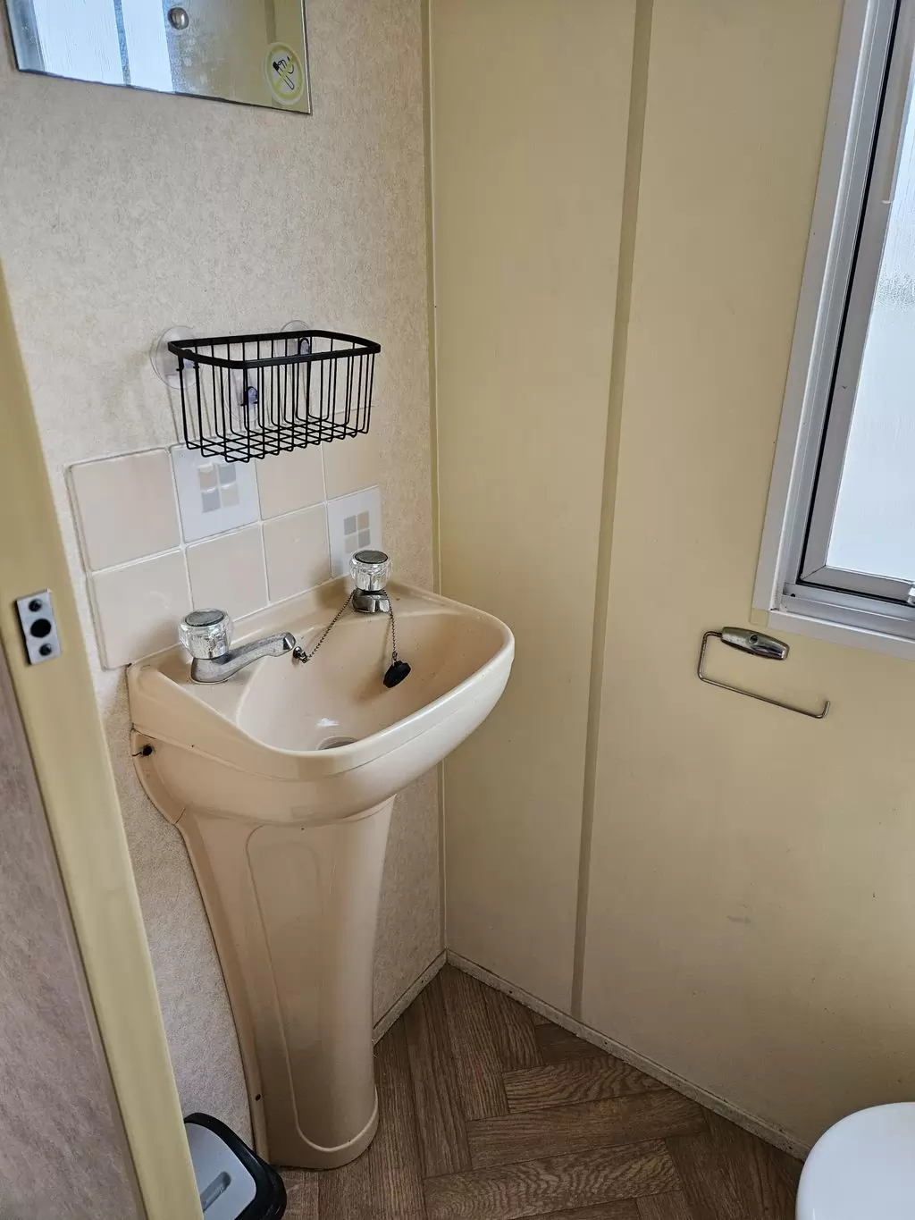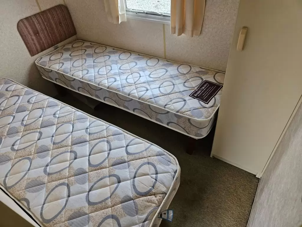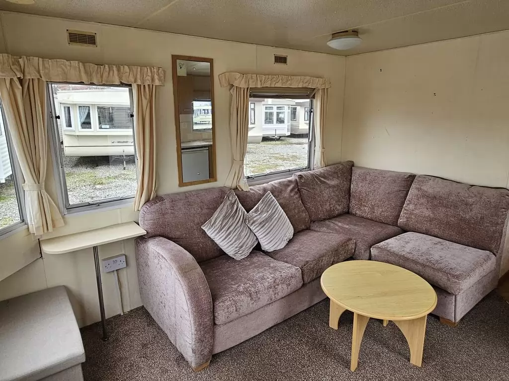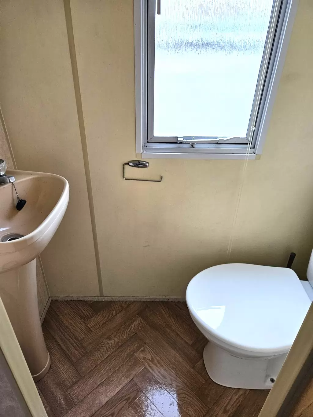 Krásný, kompletně vybavený mobilheim 8,6 x 3,1m se dvěma vchody. Obývací pokoj, jídelní kout ( rozkládací ), kuchyň včetně spotřebičů, ložnice ( dvoulůžko ), pokoj ( 2 lůžka ), koupelna se sprchovým koutem + wc. Plynový krb, plynová karma na ohřev vody.