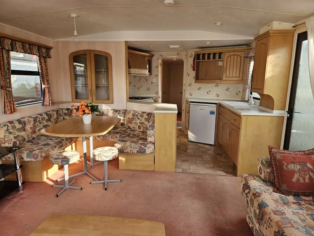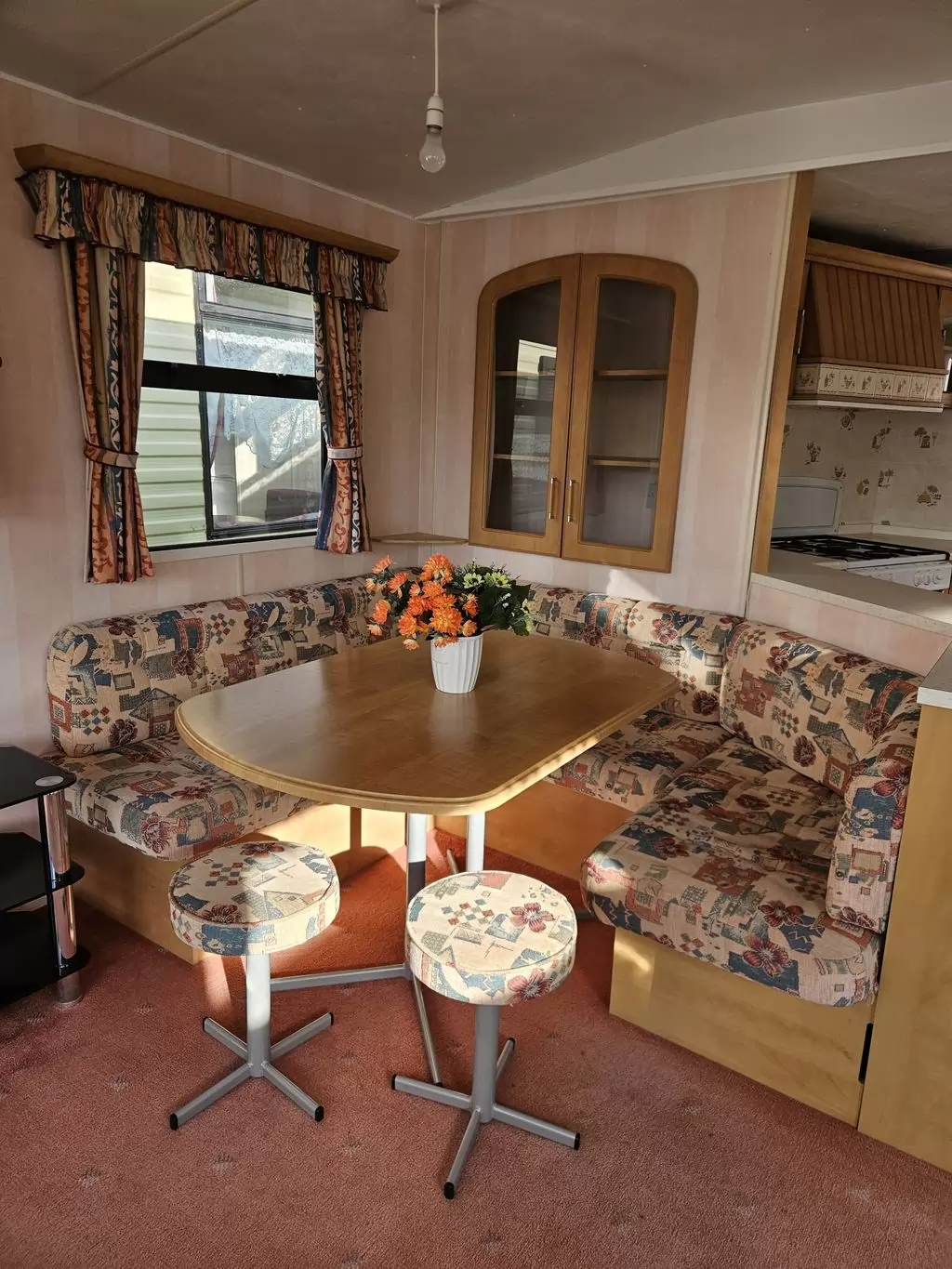 Extra široký, KRÁSNÝ, čistý, kompletně vybavený mobilheim 11,1 x 3,7m se dvěma vchody, SEDLOVOU STŘECHOU, DVOJITÝMI (izolačními) OKNY A DVEŘMI - dithermy. Prostorný obývací pokoj ( rozkládací sedačka ), jídelní kout, kuchyň včetně spotřebičů, ložnice ( dvoulůžko ), pokoj ( 2 lůžka ), pokoj ( dvoulůžko ), koupelna se sprchovým koutem s pevnou zástěnou + wc, druhé wc s umyvadlem zvlášť. Plynový krb + el. přímotopy, plynová karma na ohřev vody. Zvýšený strop !